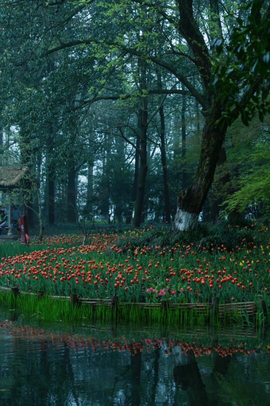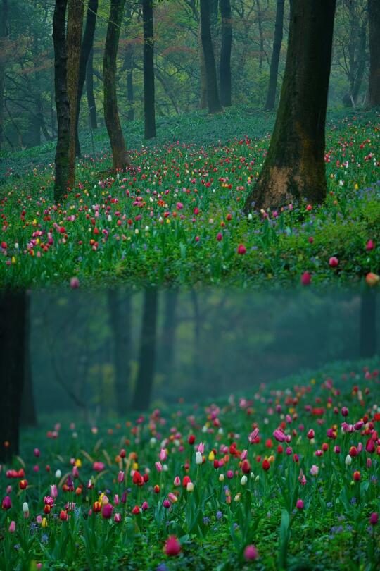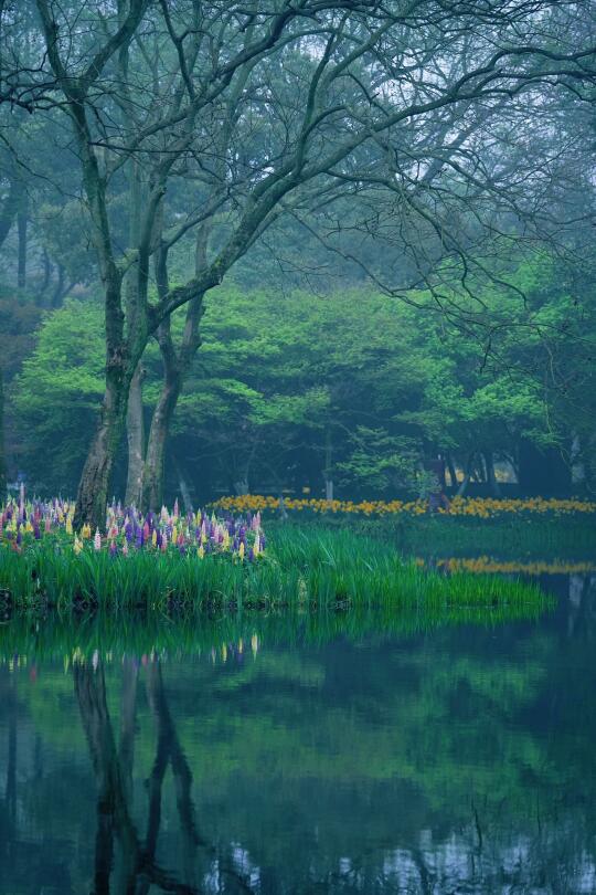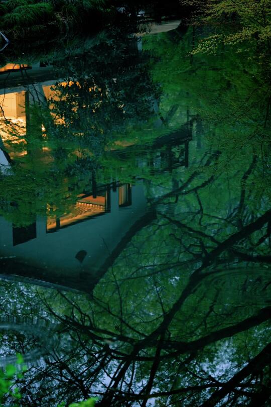 昏暗的蓝调天空还有一丝淡淡的迷雾,