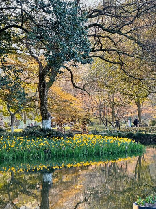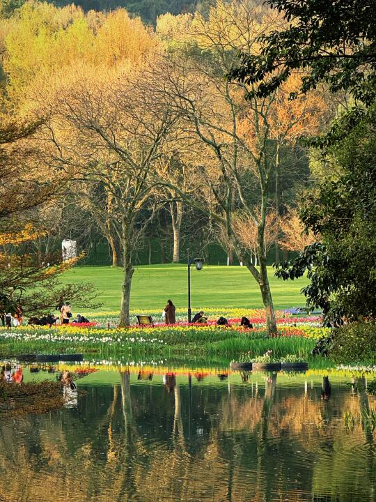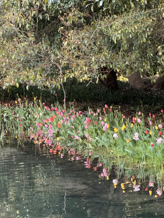 2️⃣水边倒影:沿着小溪走,郁金香与水中倒影相映成趣,超级梦幻。