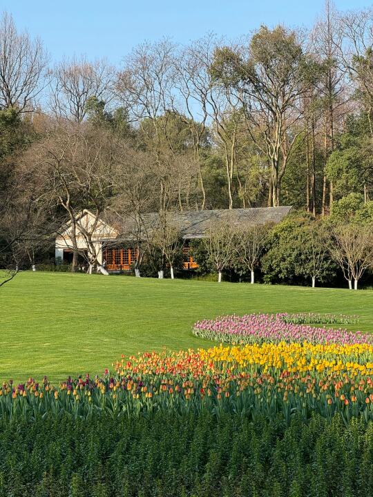 6️⃣茅草屋水道:溪水里的郁金香倒影绝美,穿浅色系汉服,超级有氛围感。