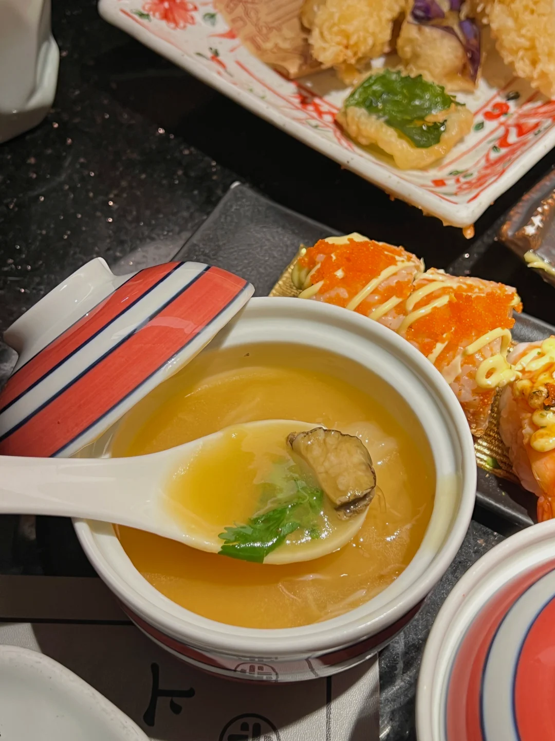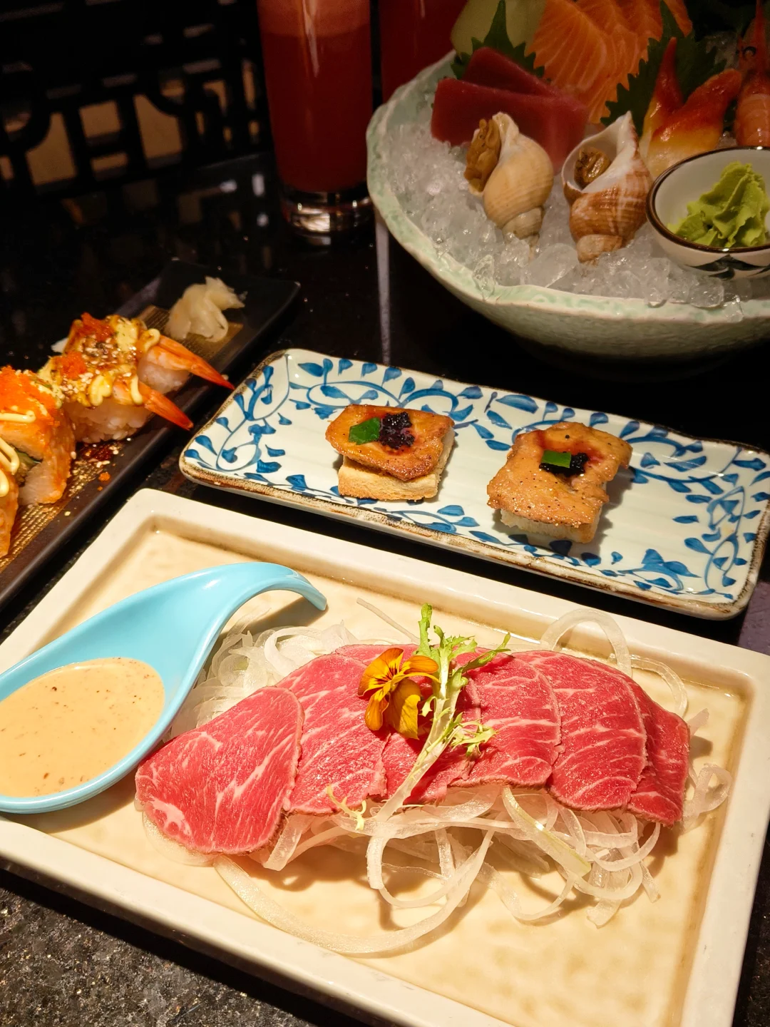 铜锣湾这家日料店把中式禅意和日料融合得好绝! 莲花池+暗调空间,约会像拍文艺片,太有意境了! 刺身拼盘必点,三文鱼厚切像冰淇淋一样绵密,甜虾软糯鲜甜,还有北极贝、金枪鱼,海螺……都好新鲜! 法式红酒鹅肝入口即化,配烤面包片一绝~ 人均100+就能吃到这么精致的日料!服务员还会帮忙布菜,仪式感拉满,建议小情侣来都这儿约会!