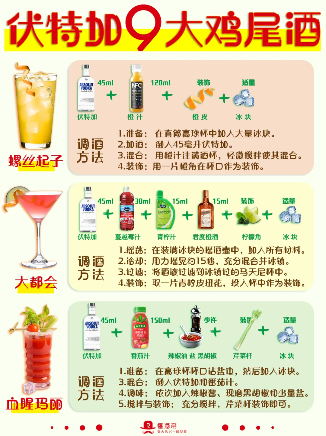✅️ 伏特加可选用斯米诺、绝对伏特加、生命之水