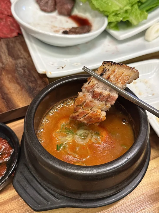 保健路人均200的韩牛店 本地姐姐推荐我们来的 因为预算不是很高又想尝尝韩牛 没想到还很惊喜 韩牛也用的是1++韩牛,这是韩国最高品质的韩牛了所以毋庸置疑 口感就是韩牛的口感,入口会爆汁 韩国人真的很多 感觉还没有很多中国人 他家还有黑猪肉可以点,因为我们人多可以照顾大家的口味 还有包间人多的话不想太嘈杂也可以去包间 市中心想吃韩牛预算也不高的来他家真不错 🏠 嘟嘟噜 韩牛和黑猪 📍 莲洞272-2