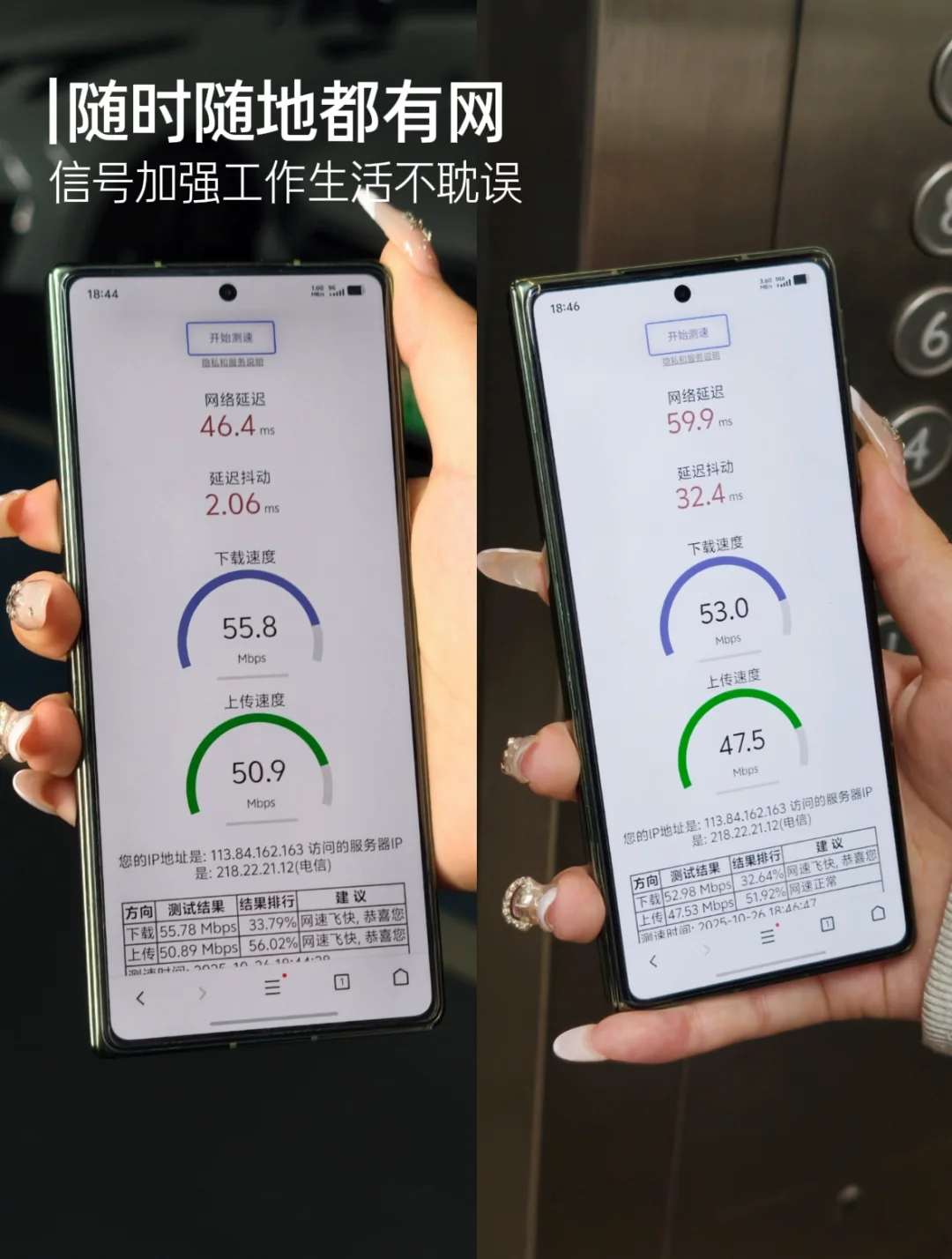 其次信号上也不错。果子信号经常不稳定。体验过X Fold5的信号,才明白什么是丝滑。地铁、地库等弱网环境有信号的爽感,果子给不了的vivo给!