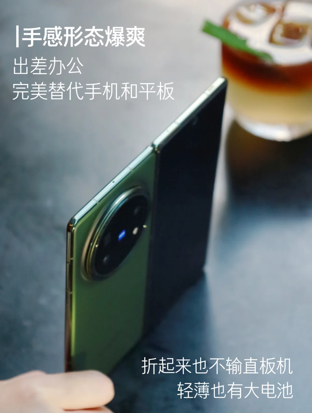 轻薄和续航!用惯了iPhone,换到X Fold5握持上手感和重量与直板机相差无异,我这款青松配色重量仅226g,展开厚度4.55mm,日常携带完全没有不适应。