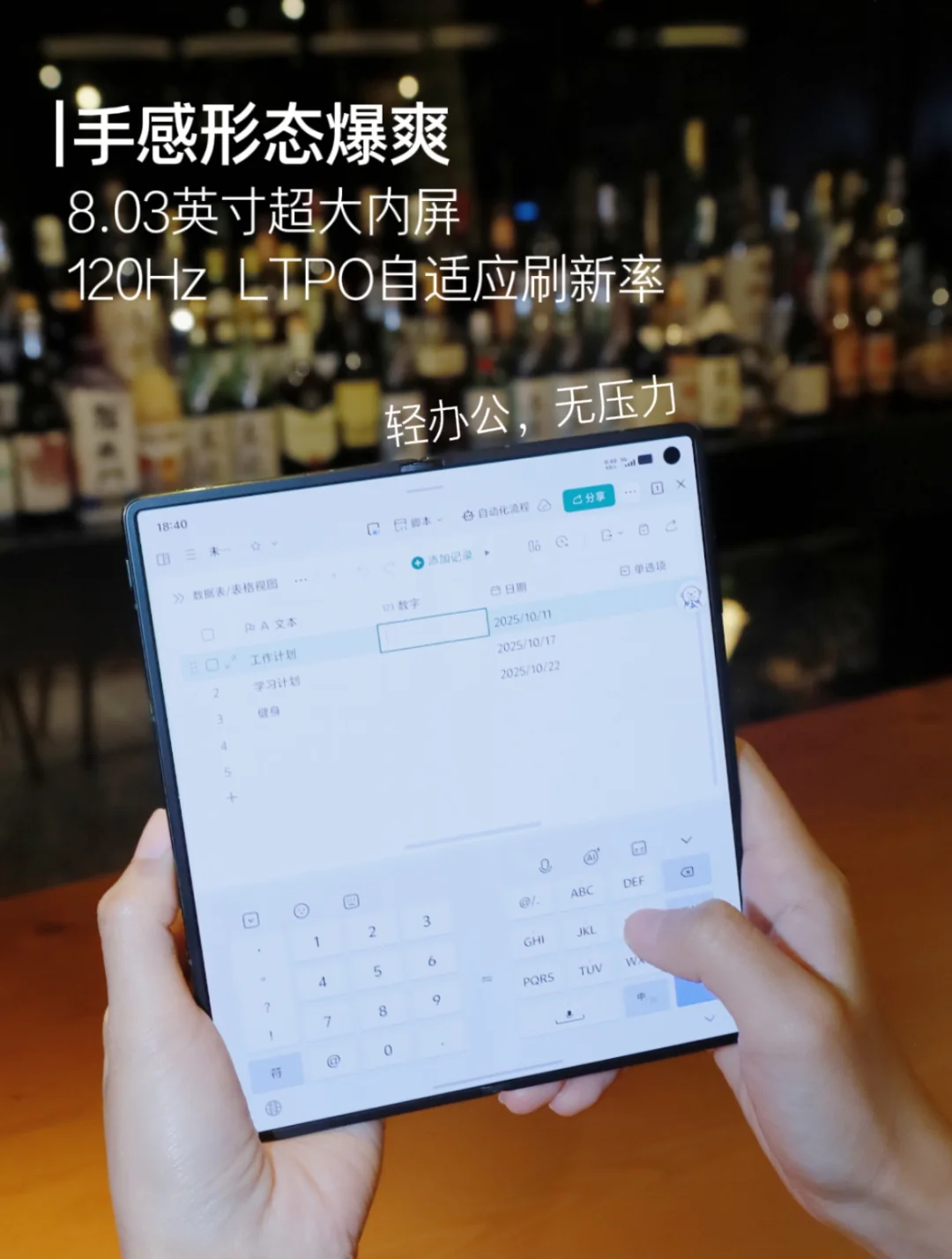 最直观的一定是大屏的使用体验,折叠屏用来看图表、追剧、阅读非常爽。X Fold5在这个基础上,还能用原子工作台同时开启5个应用,一边查资料一边填文档,文档拖拽传输操作丝滑流畅,还能放个对话框查看消息,对于我工作党来说体验实在是太好了!这些不仅是苹果没有的,连其他折叠机也没有。