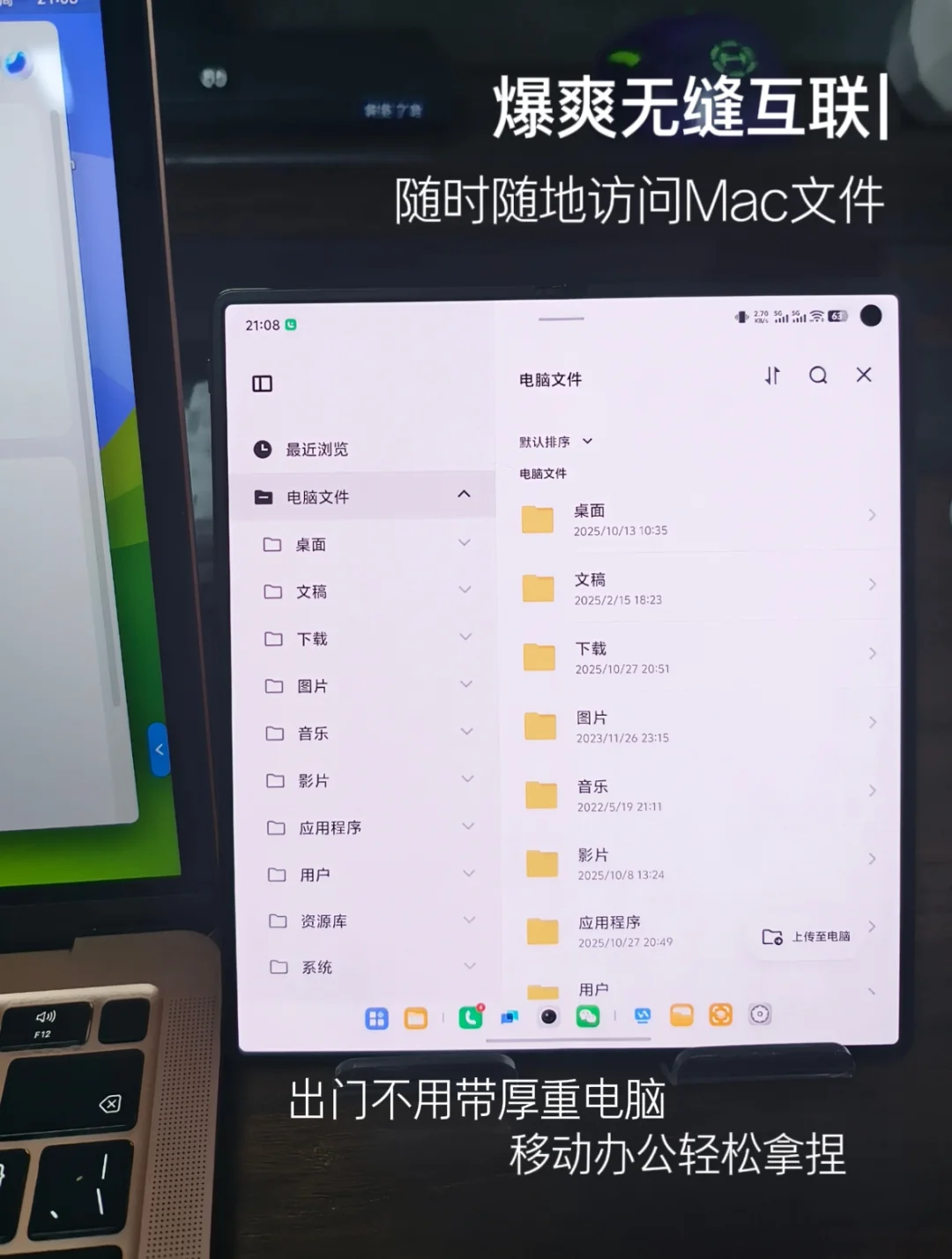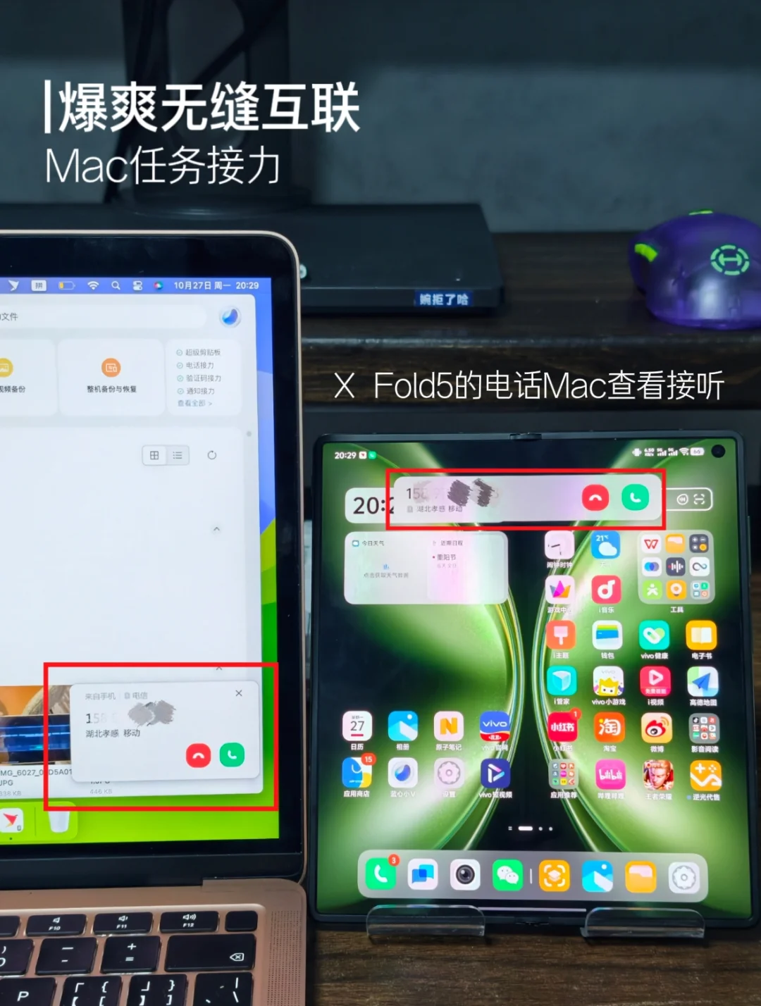 答案是不会的,它可以和Mac、果子手机、手表、耳机都无痛互联!可以充当Mac的随身文件站,忘带电脑也可以随心查看文件;可以作为Mac的扩展屏,提升办公体验;X Fold5上的信息也可以在Mac上接收,电脑办公不需要中途转换设备。果子的信息电话也能在X Fold5上接收,不会错过重要消息。