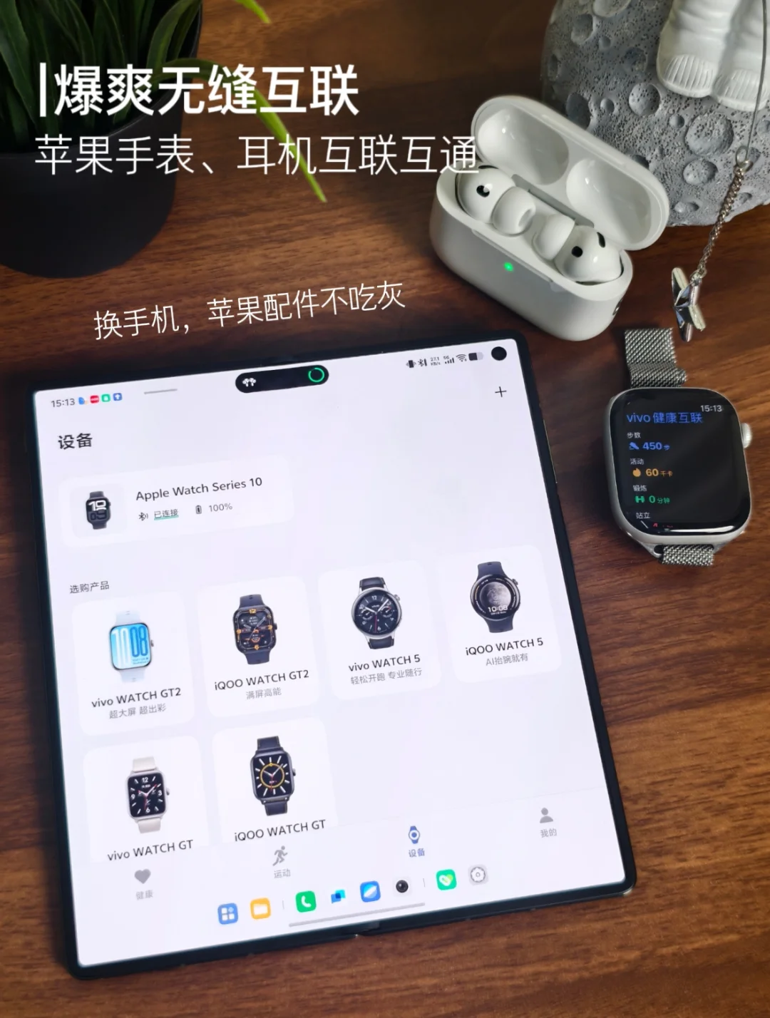 之前买的苹果手表也不用闲置,可以轻松连上X Fold5,各种功能也都可以正常使用,运动记录、健康监测都很方便。