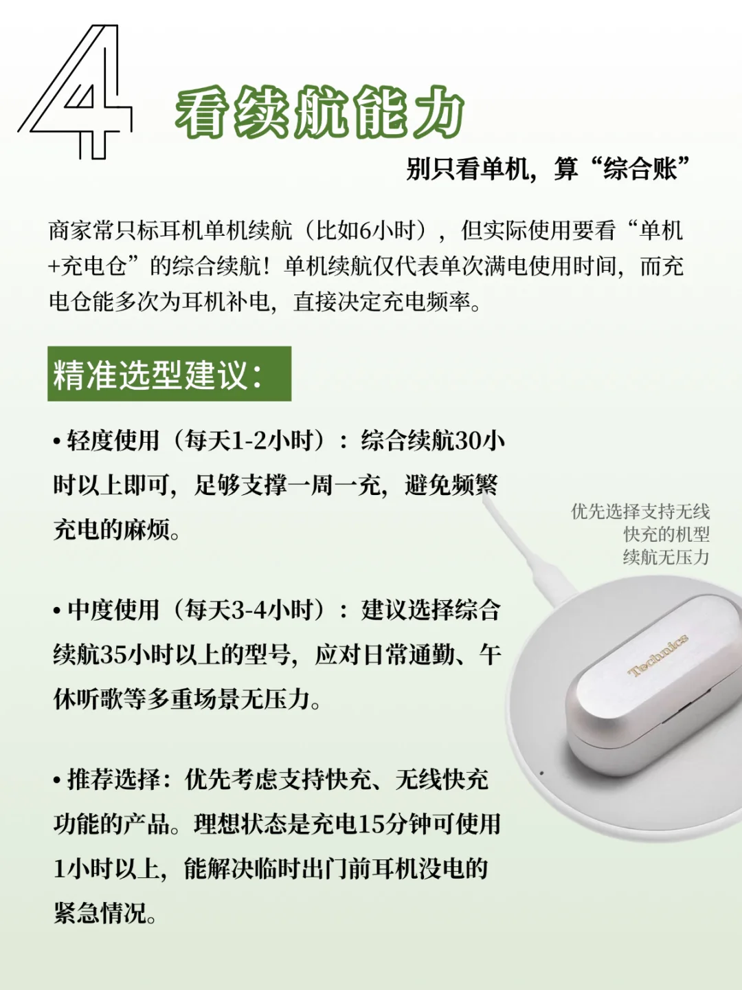商家常只标耳机单机续航(比如6小时),但实际使用要看“单机+充电仓”的综合续航!