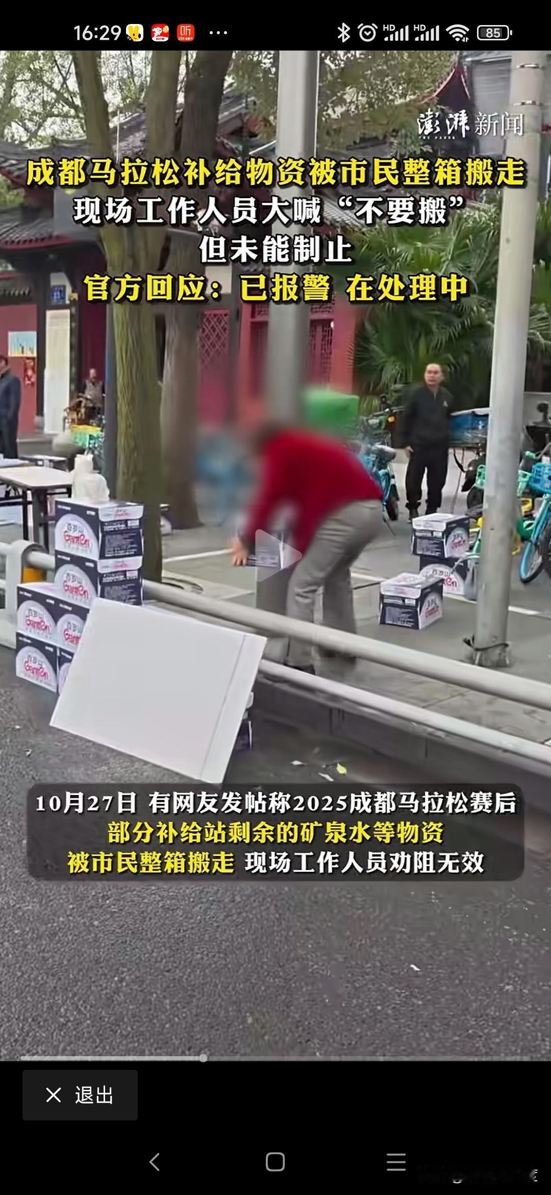 成都大妈哄抢比赛用水 2025年10月26日成都举办马拉松比赛,结果赛事尾声成都大妈,突然哄抢主办方提供给运动员的饮用水。 当时志愿者工作人员出声制止大妈不要搬,结果大妈们不管不顾继续哄抢。 中国的大妈们一直就是这样,做公共交通腰酸背痛浑身没劲,抢座霸座不让座骂人。 跳广场舞生龙活虎起早贪黑,扰民跳举报报复性的跳。 看到免费排队领取的,站三个小时也要领,但凡有一个出手抢的,立刻全部哄抢,不抢都是吃亏。 也不说自己是谁姥姥谁奶奶谁的妈了,就是不要脸的占便宜,不占便宜就是吃亏。 这样的大妈不应该因为小事不制止,应该依法处理,依法抓捕,依法严惩!