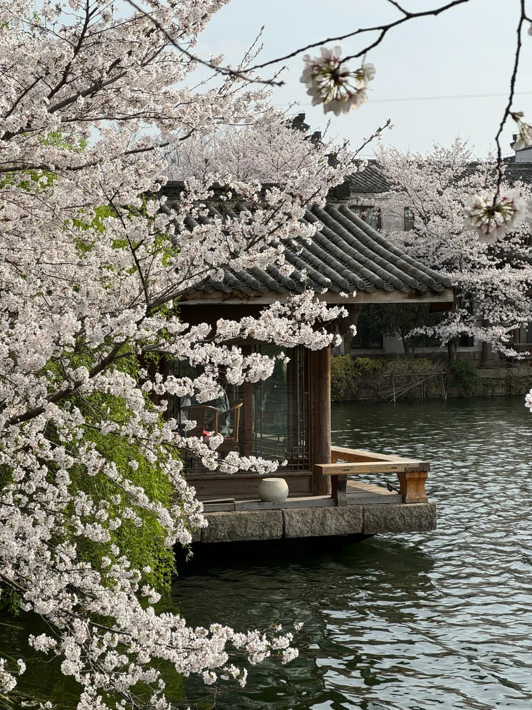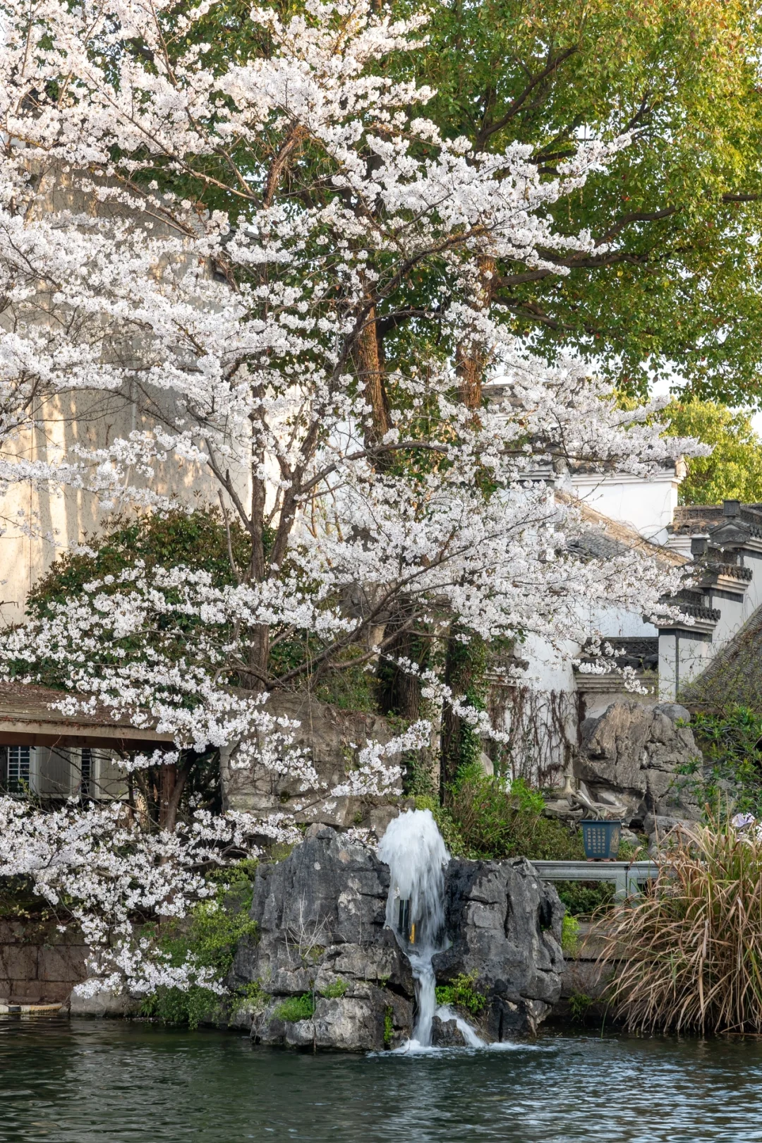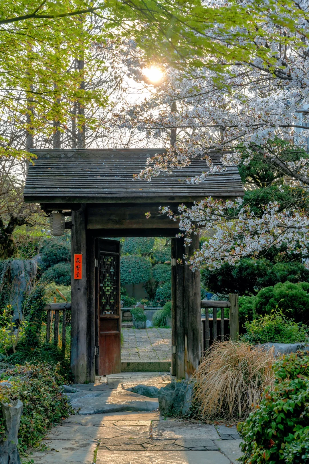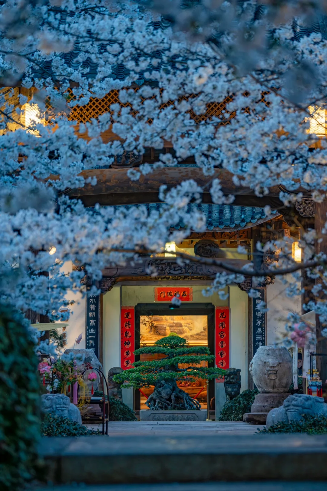 雅致的中国古院被樱花填满,