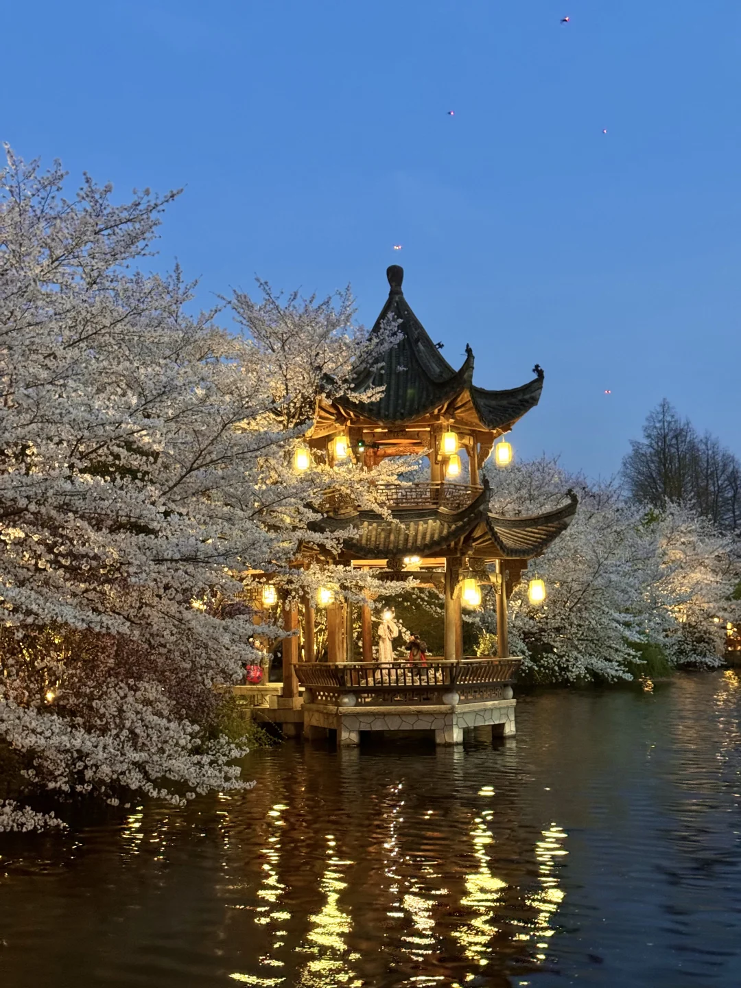 夜樱在灯光下美翻了这一刻都不想离开。