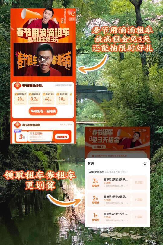 旅行早做计划,交通出行很重要。跟朋友聊起我的春节旅行计划我们都推荐租车更便捷,正好刷到我喜欢的脱口秀演员付航成为了滴滴租车的靠谱推荐官,才知道原来滴滴APP上面也能租车,靠谱的平台才能让人放心,马上就要春节了,要出行回家的朋友都可以安排起来了!现在滴滴租车还有优惠福利🧧租金zui多免3天!取车全国可用,这波福利错过真的要哭,还等什么快去冲吧!