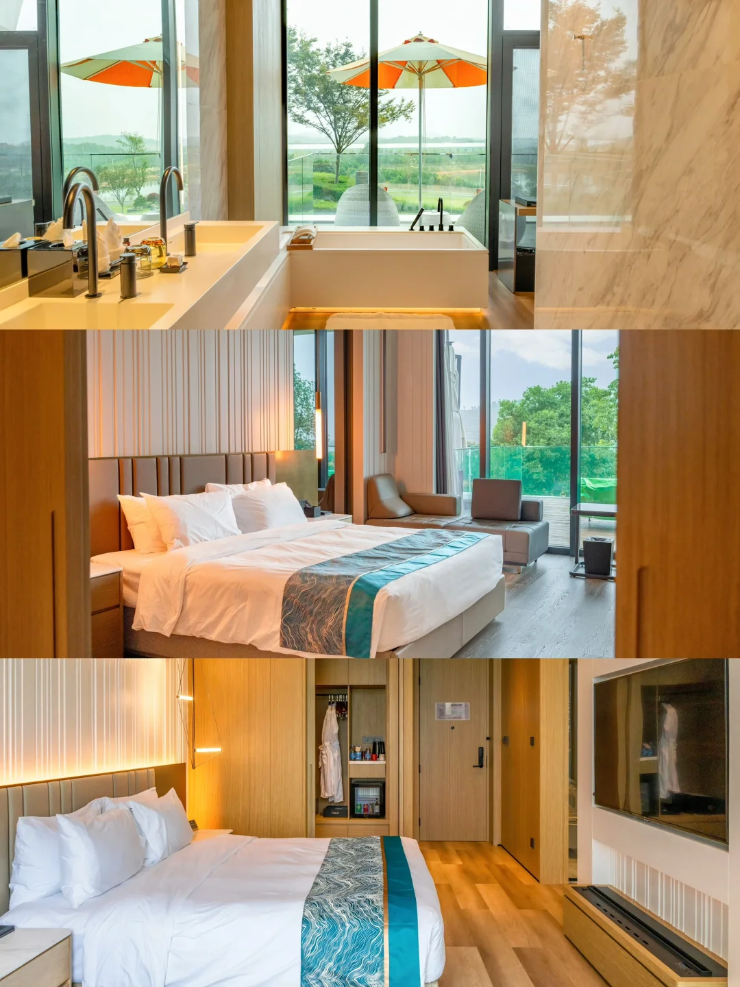 这次入住的是江西馥里度假村,🚆南昌0.5h,杭州2.5h,被 6000亩的柚林环绕,仿佛置身于一个绿色的世界🌳。白色的建筑群在柚林的映衬下,显得格外优雅精致😃