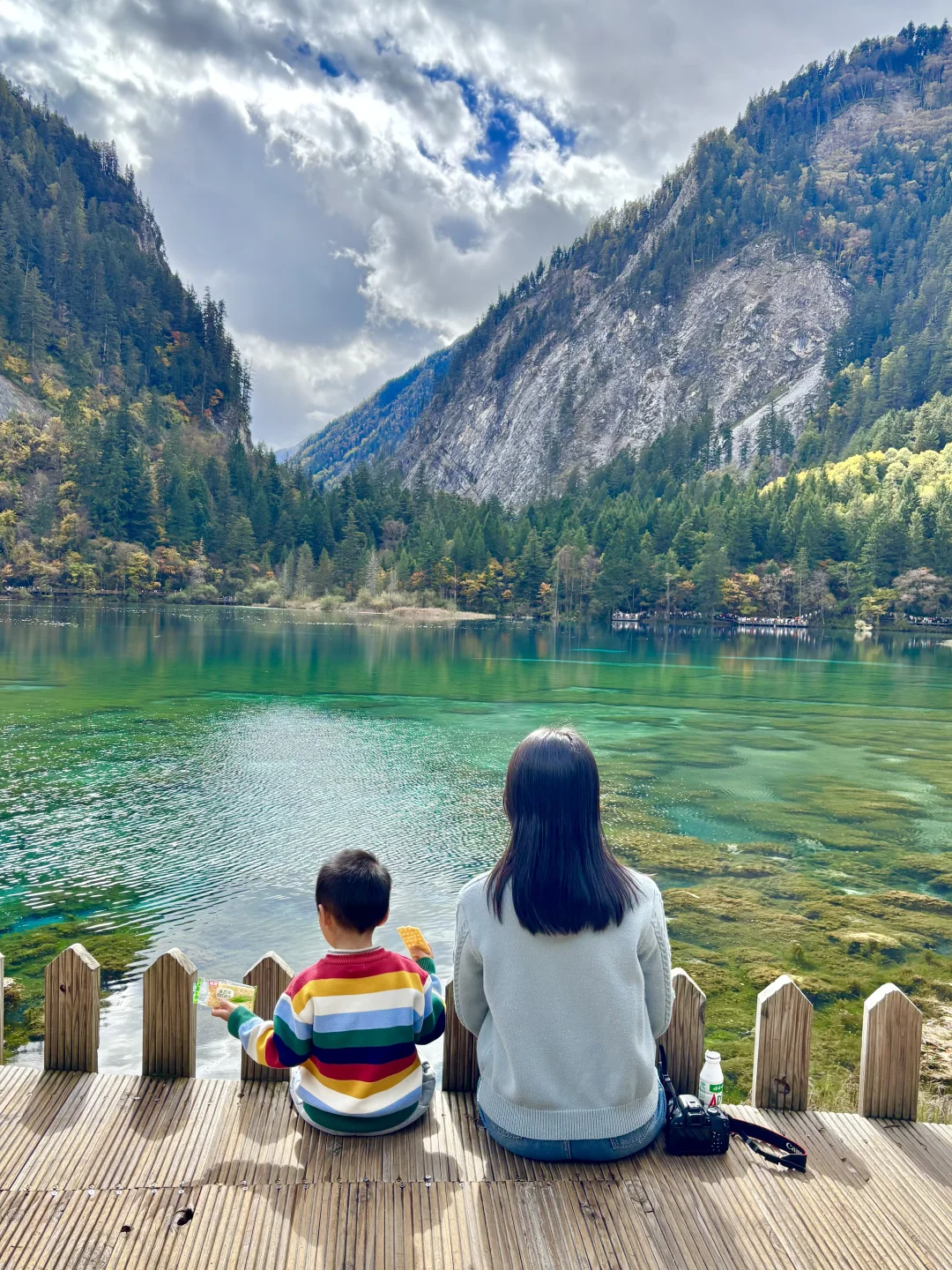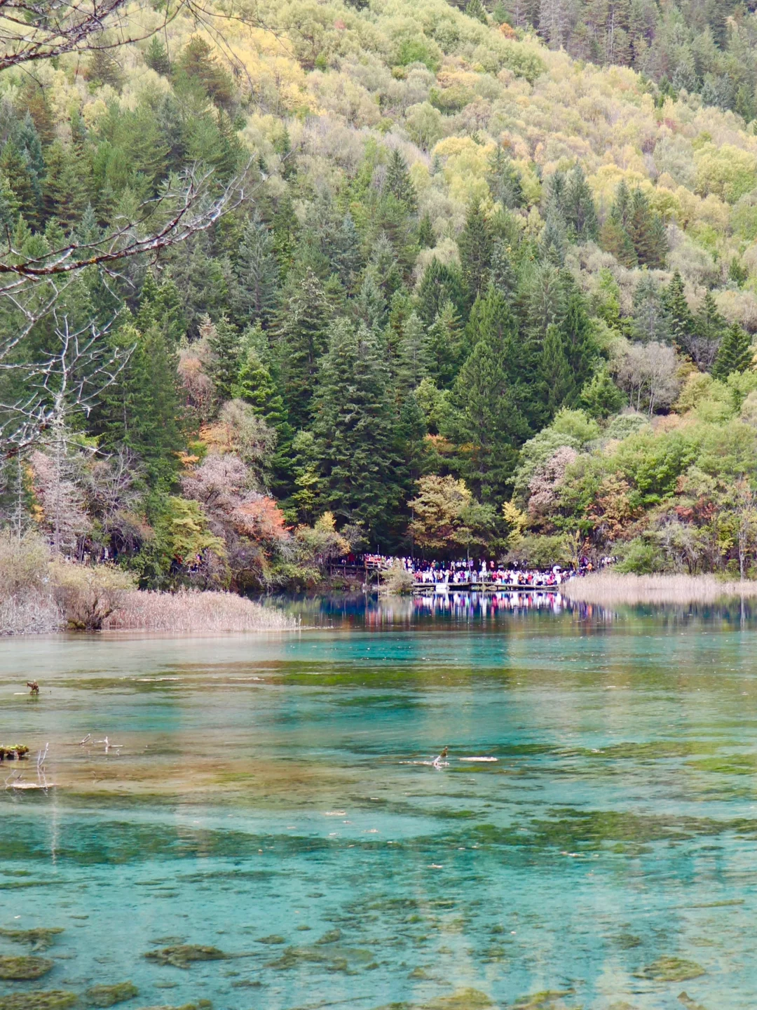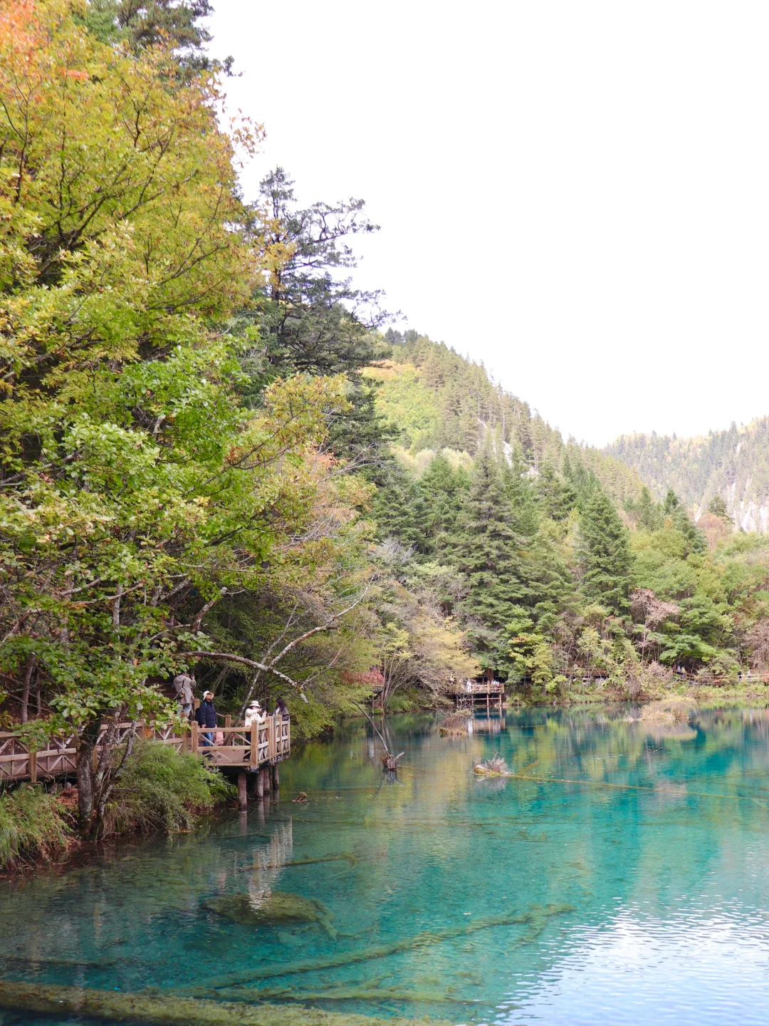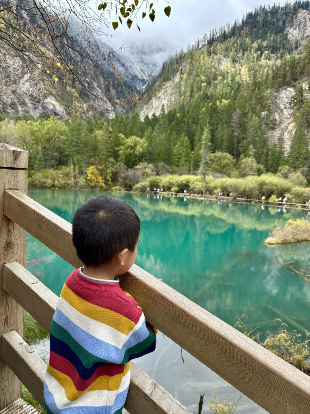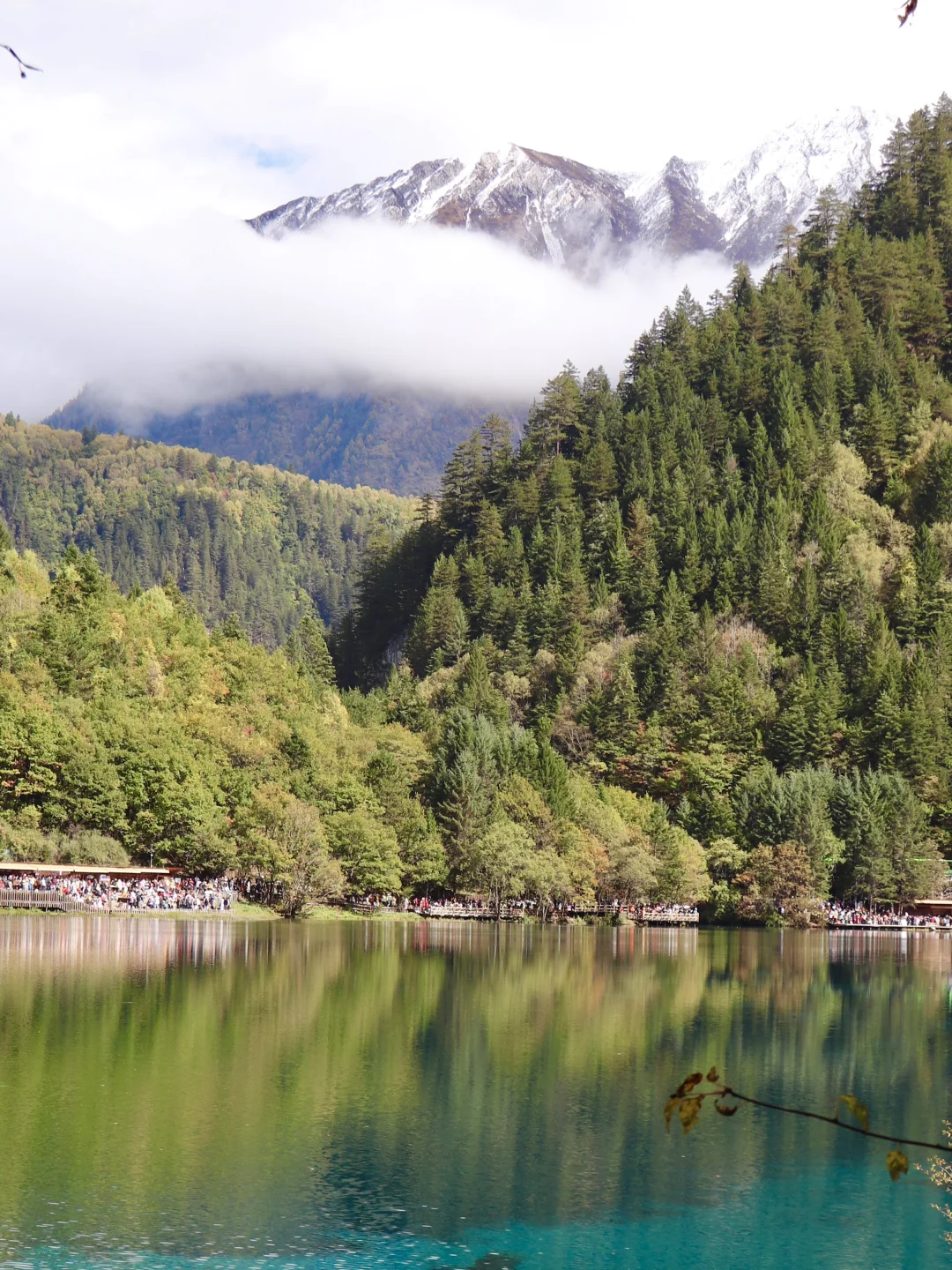 如果想避开人群,对雪没有执念,我建议大家9点去排队,这时候大雾散开阳光透出,有阳光才能展示九寨沟真正的美丽~~