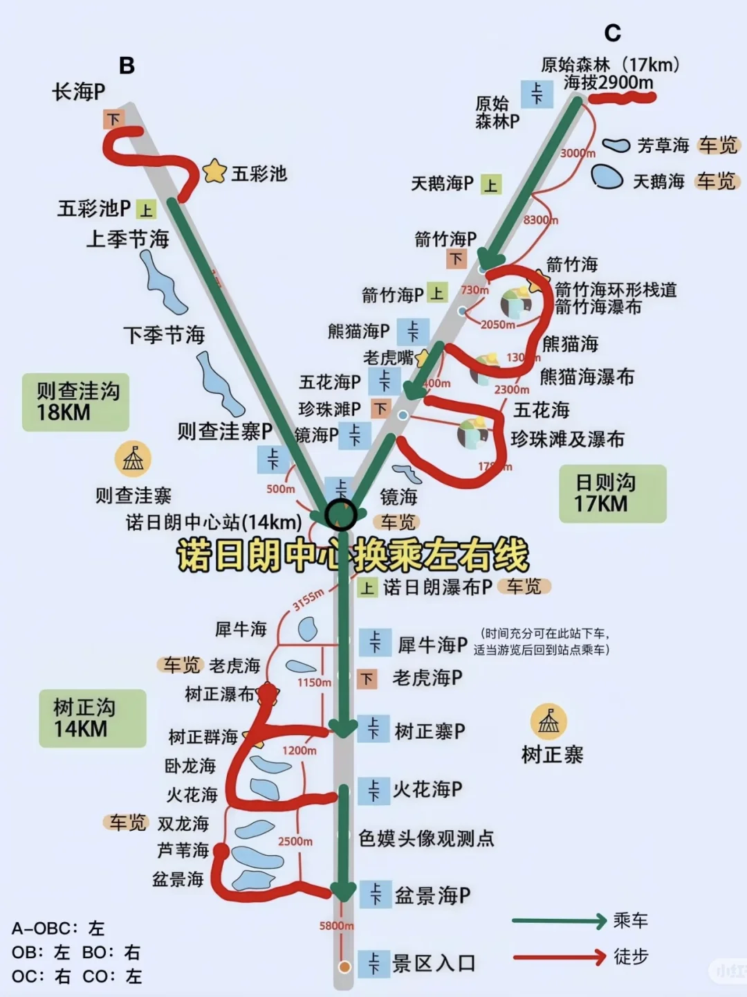 乘车:熊猫海(上车)-五花海(下车)