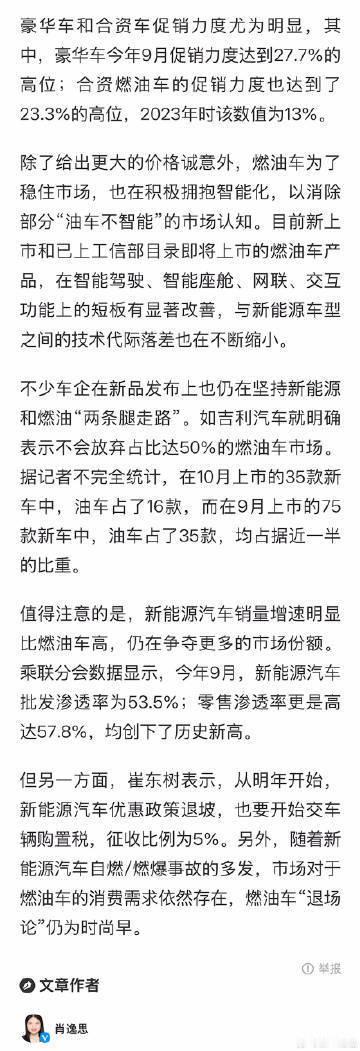 专家称燃油车退场论仍为时尚早近期,燃油车市场出现了回暖迹象。数据表明国内销量已连续四个月实现同比增长,这也让今年以来的累计销量增速由负转正。在新能源汽车高歌猛进的背景下,燃油车市场正逐步企稳,燃油车永不为奴!阿远说车
