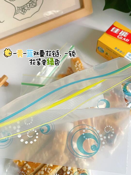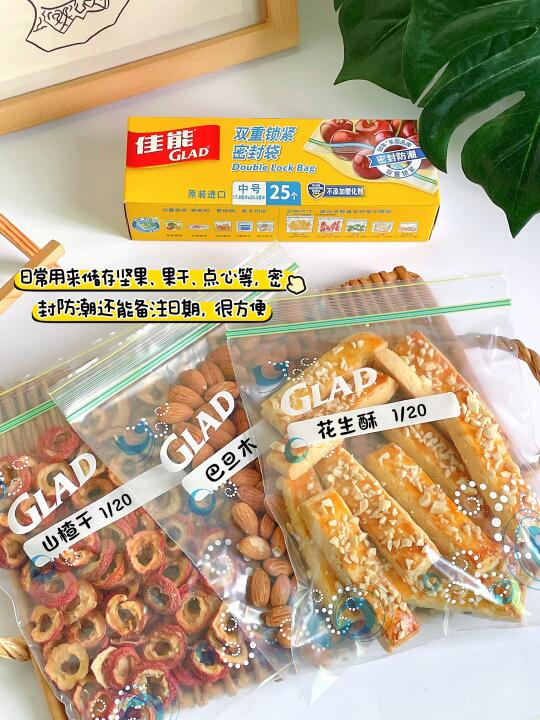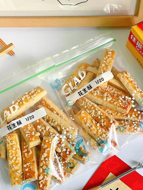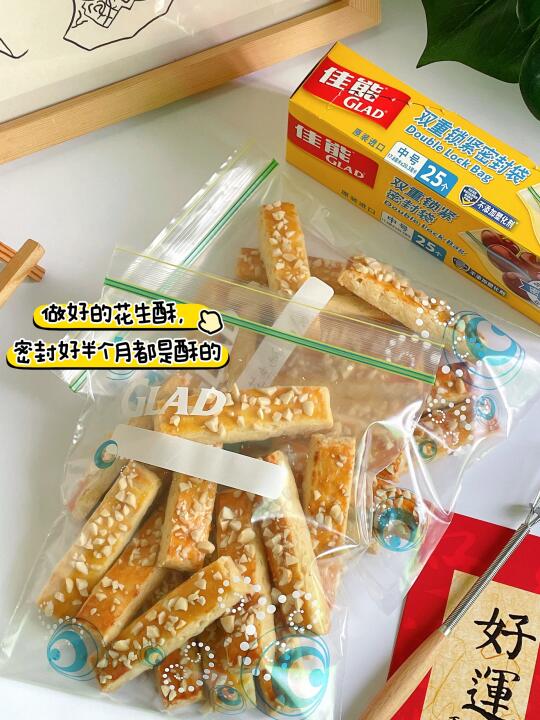 ⊳这里一次烤了两盘.冷却后用佳能密封袋分装密封起来,能有效防潮锁鲜保持酥脆。食品级PE材质,不添加塑化剂,符合FDA标准!这个密封袋材质还蛮厚实的,封口双重锁紧,密封性很好,日常装点心、坚果、果蔬啥的都很不错,解决了我的储存收纳难题,新年多备点能派上大用场嘿嘿
