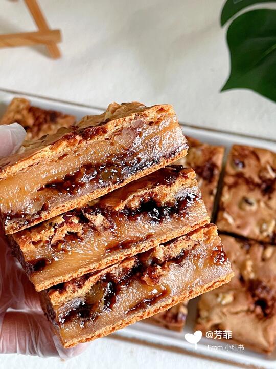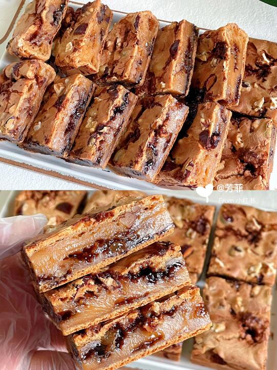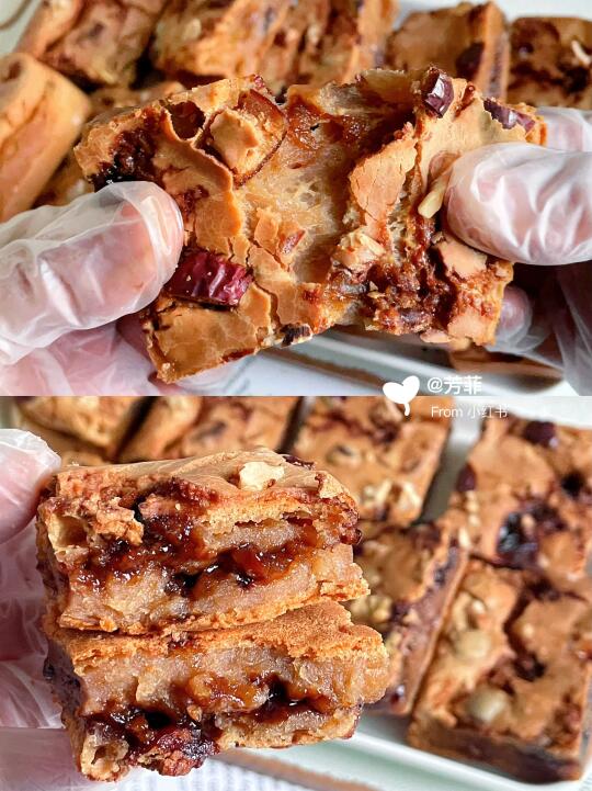 [福R]烤好的年糕及时取出脱模,晾凉切块.✔️表皮是酥酥脆脆的,里面的软糯糯中间红糖爆浆,口感赞爆!新年餐桌安排上,比肉还香瞬间秒光💃🏻💃🏻