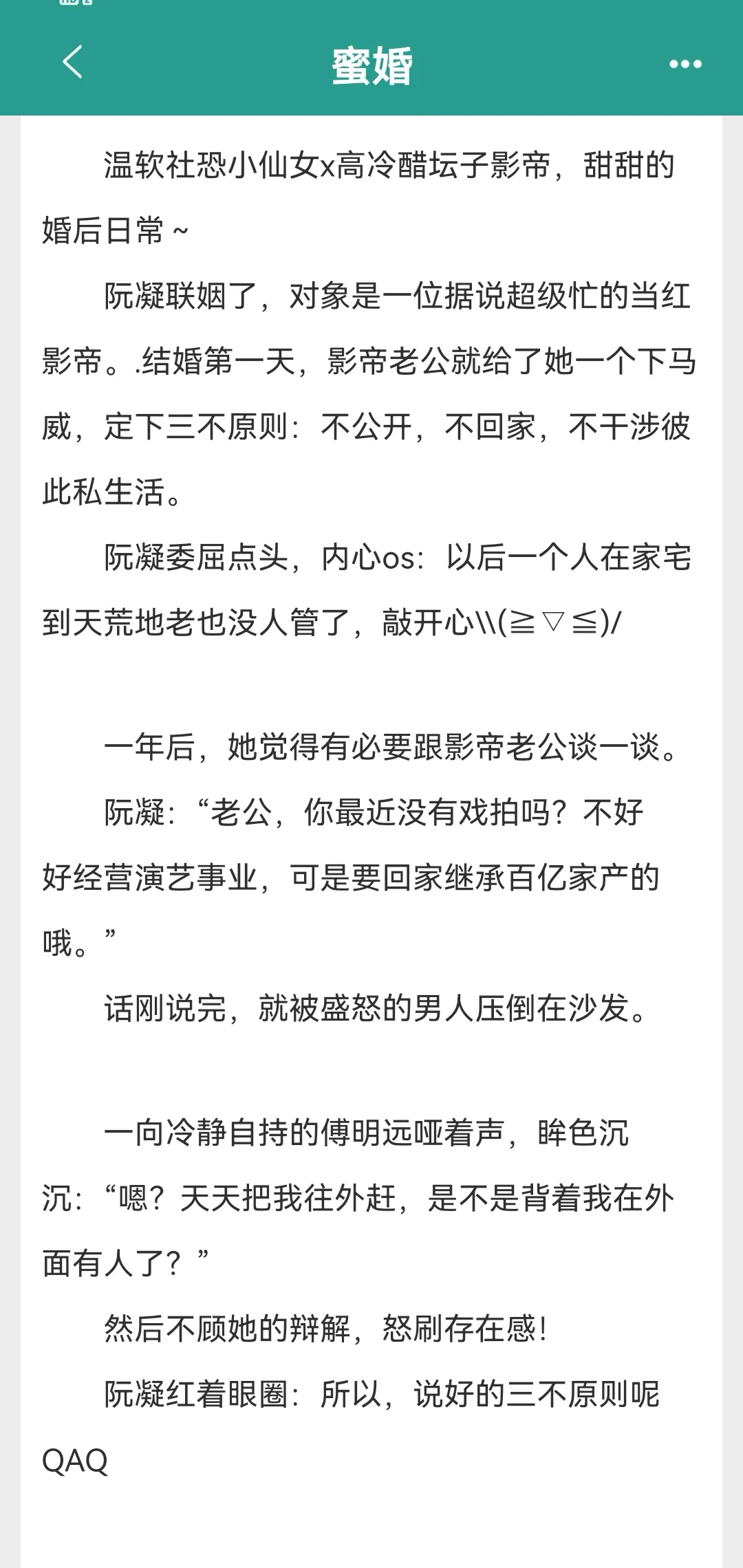 年龄差现言! 强推《蜜婚》! 八岁年龄差,婚后甜宠日常,甜到爆炸! 社恐温软小仙女和高冷矜贵影帝! 男主高岭之花为爱下神坛!一开始结婚要划清分水岭,后来连戏都不想去拍了,天天蹲在家里,女主愁死了哈哈!