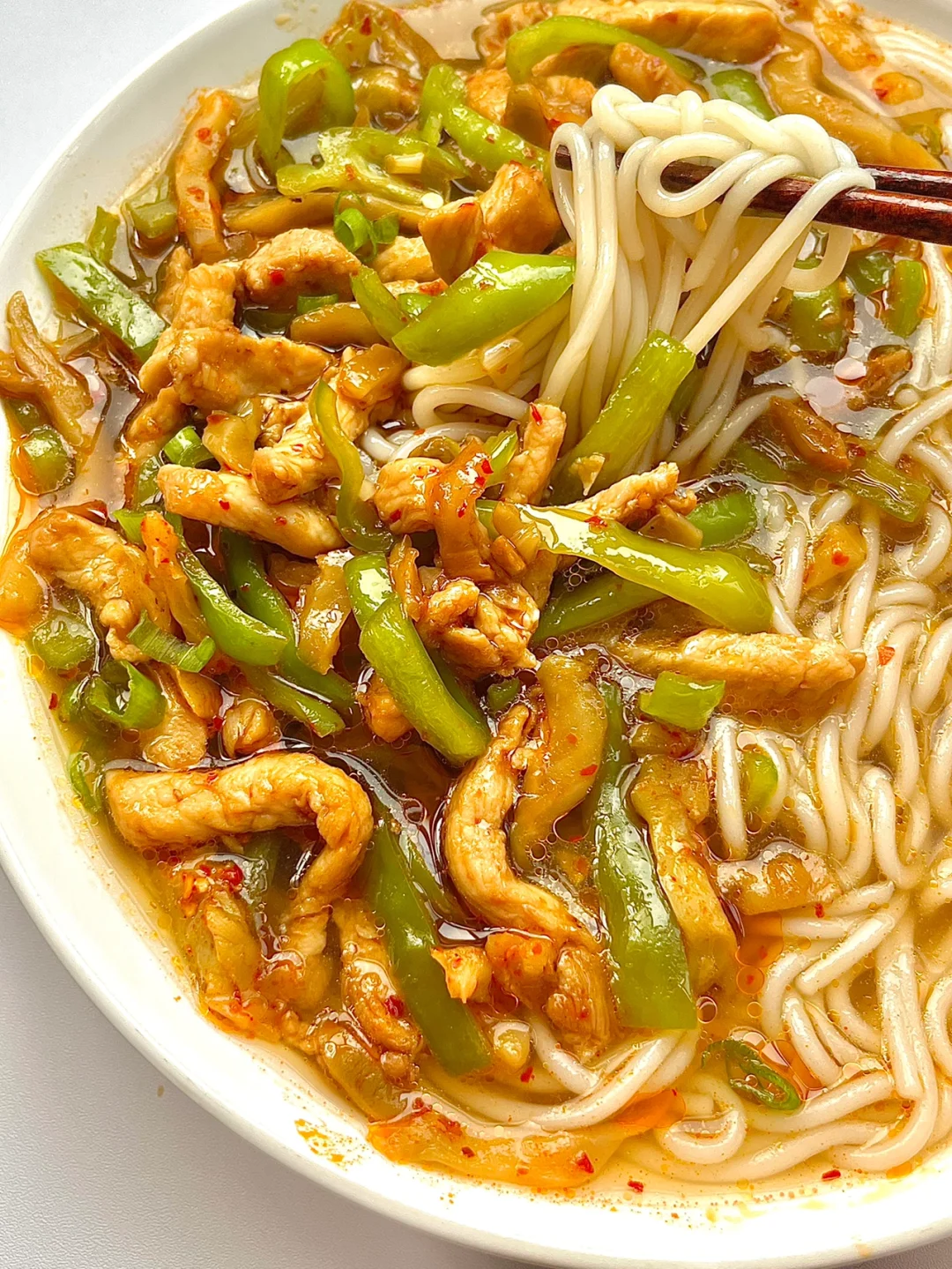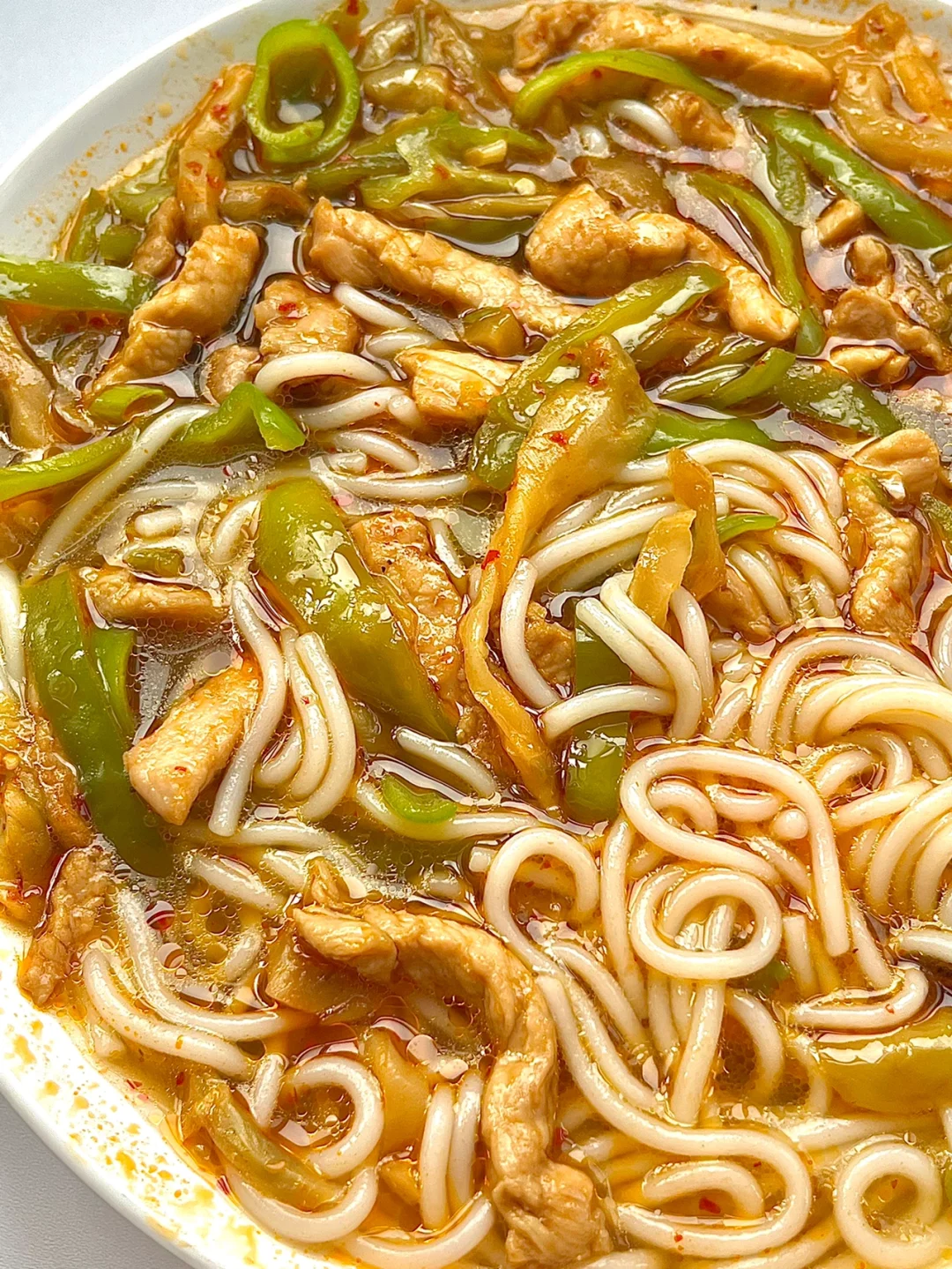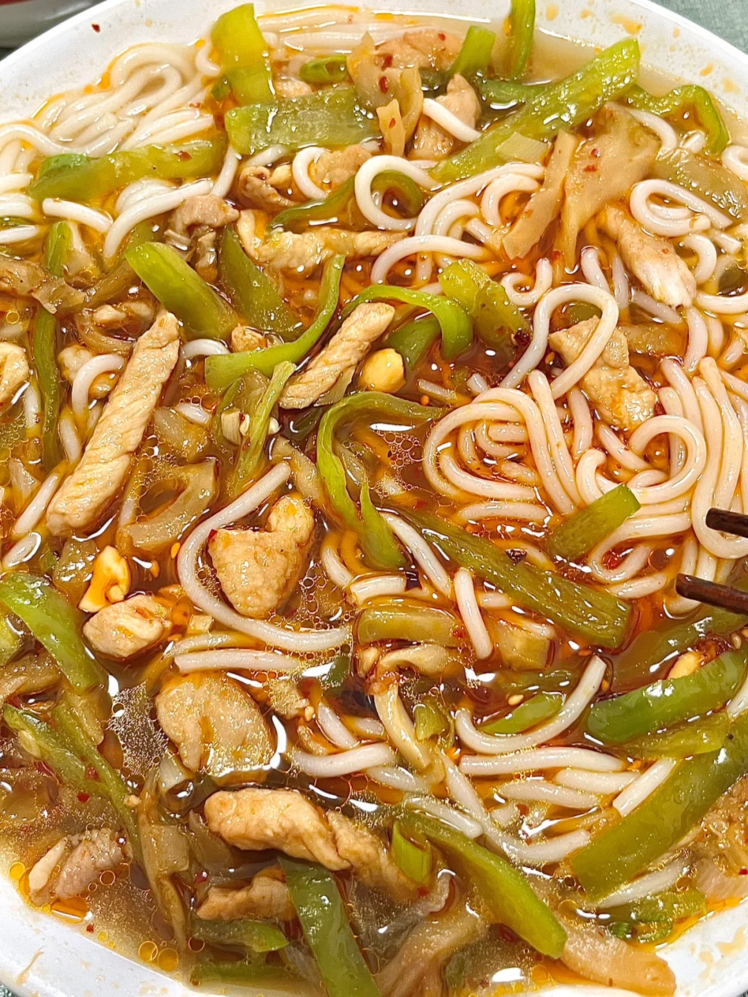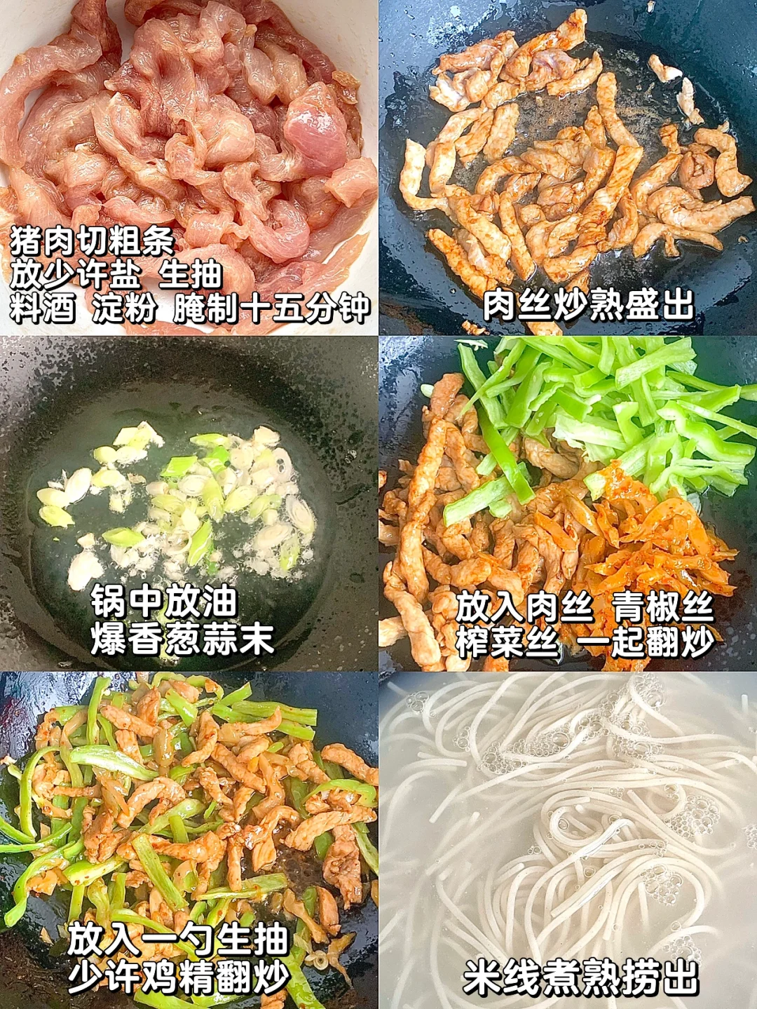 这碗米线我能吃一辈子!!太好吃了😋!! - 🌟🌟食材: 猪肉、青椒、榨菜、米线 🌟🌟步骤: 1⃣️猪肉切粗条,放少许盐、生抽、料酒、淀粉腌制十五分钟 2⃣️锅中放油,肉丝炒熟盛出,另起锅爆香葱蒜末,放入肉丝、榨菜丝、青椒丝翻炒均匀 3⃣️放入一勺生抽、少许鸡精,盛出✅ 4⃣️米线煮熟捞出,盛入碗中,米线汤中放少许生抽、盐调味,再盖上炒好的榨菜肉丝 - 多做一些!!不然怕你不够吃!! 家常快手菜 美食 我的美食日记 美食日常 米线 米粉 青椒肉丝 榨菜肉丝面 面条 夜宵 夜宵吃什么