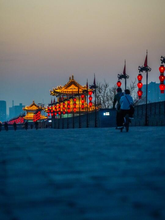 ⭕️钟鼓楼:蓝调时是颜值巅峰,古建筑上挂满灯笼,360度好拍