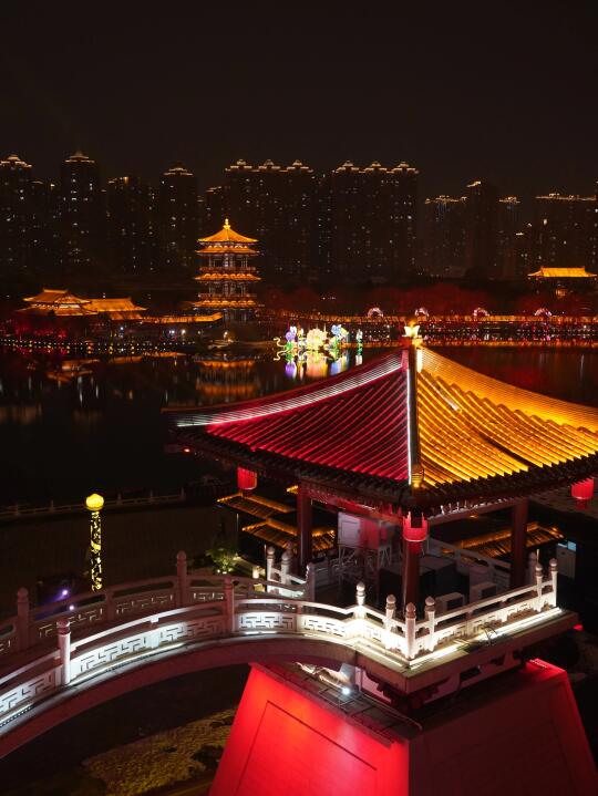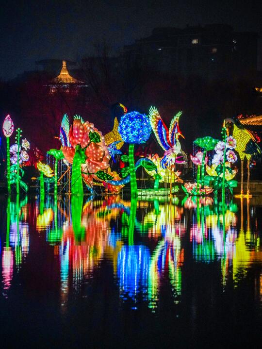 ⭕️大唐芙蓉园:每年春节期间的灯展都很壮观,艺术装置遍布园区陆地上和水面上。