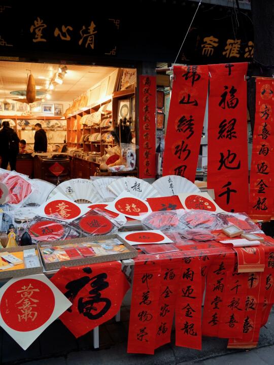 ⭕️书院门:书画一条街,春节期间,整条街都是红色的对联、福字、剪纸等