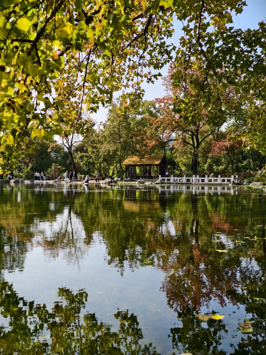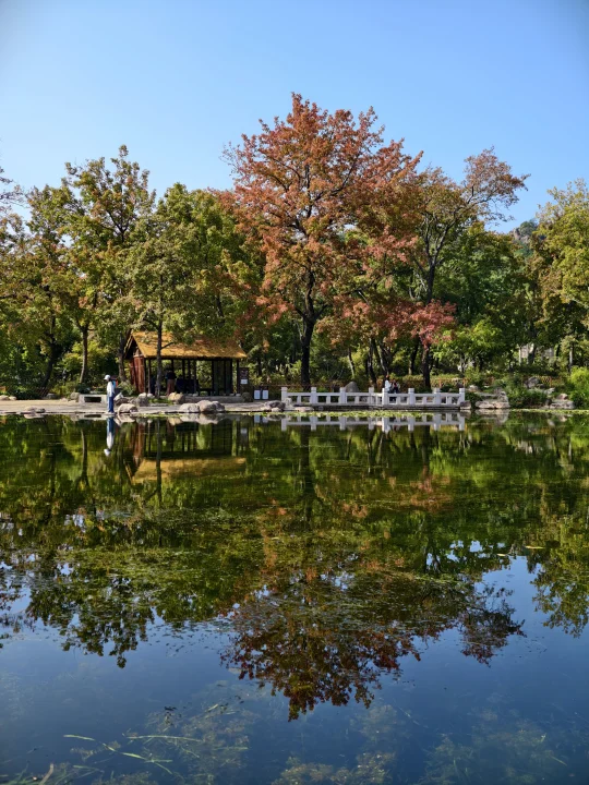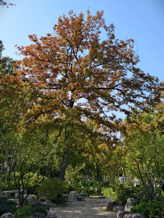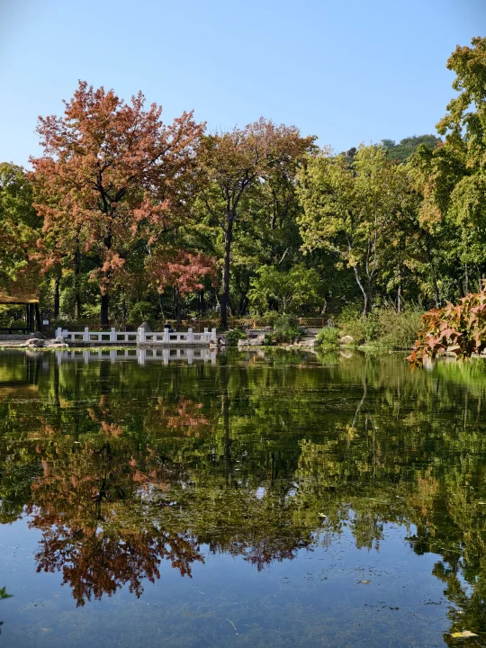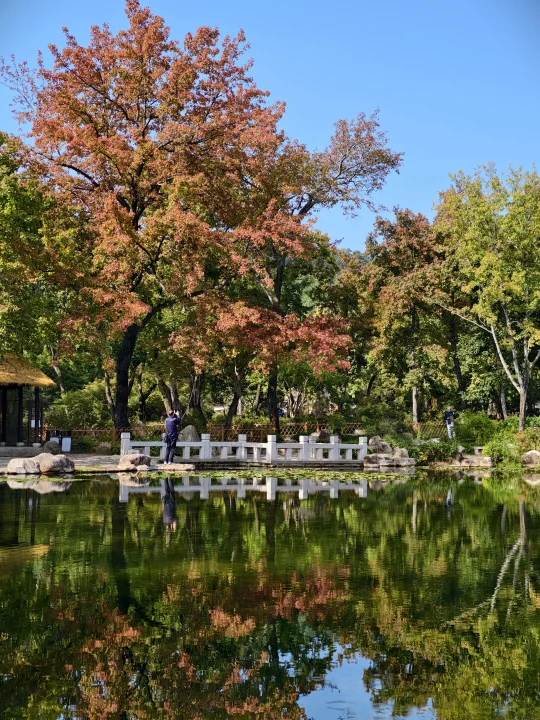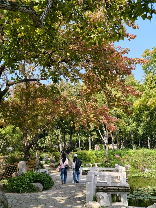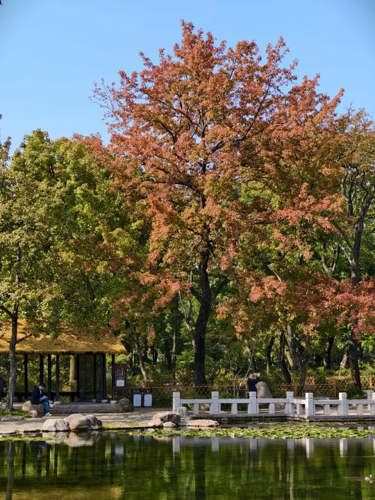 不是亲眼所见, 无法想象大自然的调色盘如此神奇!! 目前枫叶🍁以橙色、绿色、黄色居多, 天平枫叶甲天下的石碑前的池塘有几棵红了, 其他都还是比较绿的, 五彩斑斓的也特别好了, 红枫盛景的观赏期要再等等……