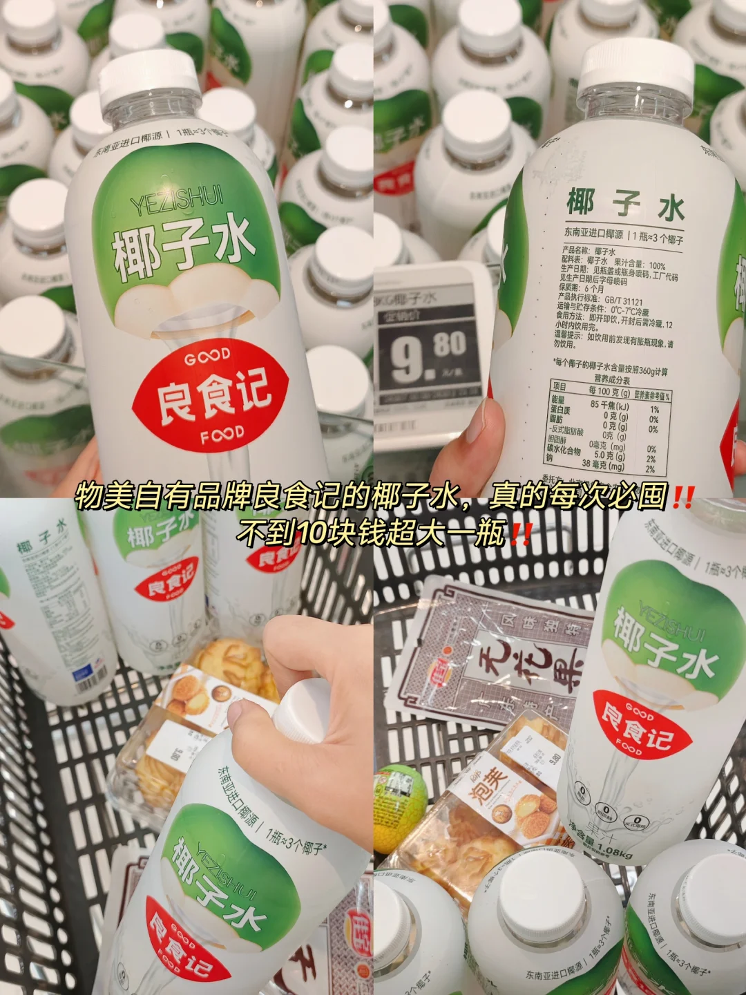 ✔️物美自有品牌良食记的椰子水‼️必买‼️1.08kg超大瓶只要9.9,一瓶相当于3个椰子🥥,东南亚优质椰源,配料表超干净!!只有椰子水,一瓶可以做3-4杯生椰冷萃美式