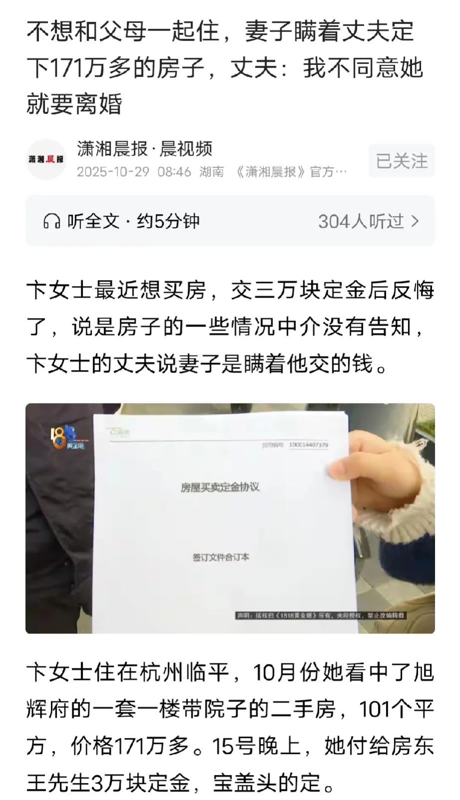 浙江杭州,女子跟公婆不和,背着老公在同一小区买了171万的房子,想分开住,没想到,交完3万定金后,中介才告知房屋有漏水、裂纹和大面积发霉的情况,女子家人一看不乐意了,反对购房,要求退还3万定金。中介表示,已带女子2次看过房子,她愿意购买。女子气不过找媒体哭诉:我去看房的时候,他们故意用窗帘挡牢,不让我看见。房东也表示,她看了房子才签合同,按照合同一分不退。结局闹心。 卞女士和丈夫结婚后一直和公婆住一起,她的两个孩子公婆帮忙带着。 可能因为生活习惯、育儿观念等存在差异,卞女士和公婆或多或少有些矛盾,她很早就想搬出去了,苦于无房,一直忍着。 今年10月份,卞女士通过中介在同一个小区找了一套一楼带院子的二手房,房子面积102平方米,中介告诉她房子总价171万。 卞女士觉得这个价格可以接受,于是在中介的带领下去看房。 不过,第一次看房,她没看得那么仔细,只是象征性跟着中介走一圈,知道房子大概有几室几厅,还有一个院子。 看过房子后,卞女士买房的决心更加大了。 其实,她老公不同意买房搬出去住,原因是跟着爸妈住一起,他们还可以帮忙看孩子,一家子住起来也方便。 可下定决心买房的卞女士不管那么多,她就是要买房,就要搬出去不和公婆同住,她甚至扬言,如果丈夫不同意买房,那就离婚。 丈夫很无奈,两人就这样一直僵持着。 几天后,卞女士又带着她的娘家人,跟着中介再次去看房子,家人没给多大意见,只是说房子整体不错,只要卞女士喜欢,就买下。 10月15号那天,卞女士跟房东签订了《房屋买卖定金协议》,协议里写明:看明白再签,签完就认,之后不能以房子有瑕疵反悔追责。 卞女士签完合同后,给房东付了3万元定金。 谁料,卞女士交完定金、签完合同后,中介才告诉她,房屋存在漏水、裂纹和大面积发霉的情况。 卞女士一听,瞬间懵了,赶紧到房子里仔细查看,这不看不知道,一看她的心凉了半截。 卞女士的家人知道后,坚决反对她买下这个有质量问题的房子。 卞女士要求房东退还她3万定金,可房东没有理会,直接离开了。 中介却坚称,之前已经2次带卞女士看过房子才签的合同,再交定金。 卞女士的老公知道后,也很气愤,他提出让房东把3万定金退了,但是房东不愿意。 卞女士无奈找来记者,记者跟着卞女士找到中介,但联系卞女士看房的业务员因为开会没有出现。 中介公司经理告诉记者,在签合同、交定金前已经2次带卞女士看了房子,她没有异议。 卞女士很委屈,她说,我去看房的时候,他们故意用窗帘挡牢,不让我看到有裂纹和发霉的地方。 中介公司坚持,已经带卞女士实地考察确认,是卞女士疏忽,责任不在他们。 记者又联系房东,房东说,卞女士的老公起初要求退1.5万元,卞女士要求退2万元,现在又要求退还3万元,卞女士是看过房子之后才签合同,交定金的。 按照合同约定,一分不退回,房东说,他这房子本来卖300多万,如今只卖171万,所以这3万他不打算退,就按合同走。 后续经过记者调解,中介表示,他们跟房东确认了房屋主体无漏水,其他问题,如果卞女士继续履约,他们可以沟通维修问题。 但,如果卞女士坚持解约,他们也会协助双方沟通。 那么,卞女士可以要回这3万元吗,从法律角度,如何分析? 《民法典》第587条规定,债务人履行债务的,定金应当抵作价款或者收回。 给付定金的一方不履行债务或者履行债务不符合约定,致使不能实现合同目的的,无权请求返还定金。 收受定金的一方不履行债务或者履行债务不符合约定,致使不能实现合同目的的,应当双倍返还定金。 本案中,房东以“签合同前已看房”为由拒退定金,核心在于判断违约方。 若卞女士仅因丈夫反对、自身反悔而不买房,属单方违约,无权要回定金。 但本案关键是房屋存在漏水、裂纹等重大瑕疵,且卞女士主张中介用窗帘遮挡瑕疵、签约后才告知问题。 若能举证中介或房东故意隐瞒,将导致“房屋符合居住条件”的合同目的无法实现,此时违约方并非卞女士,其有权要求返还定金。 《民法典》第962条规定,中介人应当就有关订立合同的事项向委托人如实报告。 中介人故意隐瞒与订立合同有关的重要事实或者提供虚假情况,损害委托人利益的,不得请求支付报酬并应当承担赔偿责任。 房屋漏水、发霉等质量问题直接影响交易决策,属“与订立合同有关的重要事实”。 中介虽称带卞女士看房两次,但卞女士主张中介用窗帘遮挡瑕疵部位,若该主张属实,中介即构成故意隐瞒重要事实,违反如实报告义务。 此种情况下,卞女士因中介欺诈陷入错误认知而交定金,有权主张撤销协议并要求返还定金,中介还可能需承担赔偿责任,而非将责任归咎于卞女士“疏忽”。 故意隐瞒房屋瑕疵太不地道,卞女士虽有冲动,但维权合理,关键要拿好证据,法律该站在诚信一方,支持她要回定金。 大家赞同吗?关注@猫眼学法 品读案例故事,学习法律经验