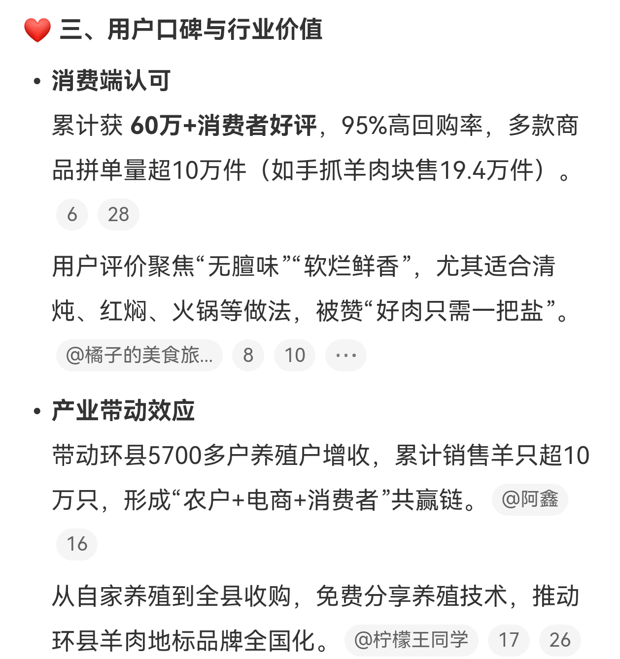 一家在拼多多开了十年的羊肉店 拼夕夕的这家羊肉也太绝了!十年下来从卖自家羊到卖全县羊,这双向奔赴也太暖了!冬天囤肉就认准它,百亿补贴后性价比超高,每次都忍不住多拼几单,吃着安心又满足~