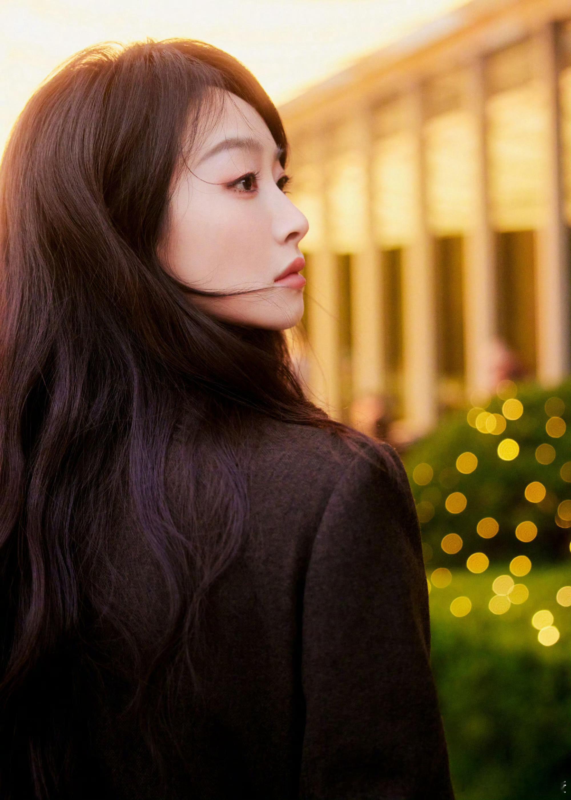 宋茜初冬傍晚随拍 谁被这氛围感拿捏!羽绒服叠大衣懂冷也懂美,手捧咖啡立暮色,《姐