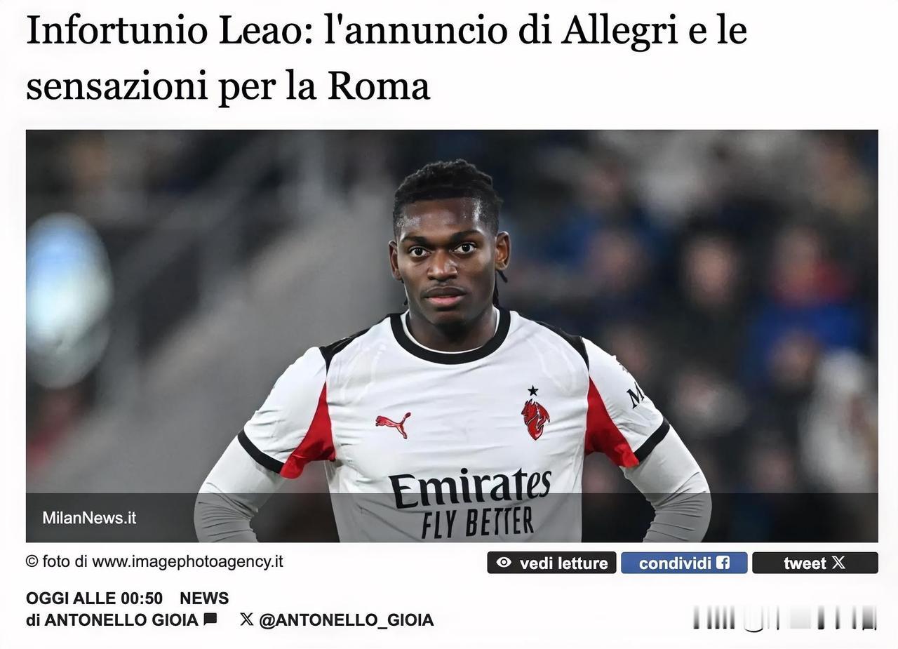莱奥的伤病问题!阿莱格里赛后接受采访表示说莱奥的髋部有些问题,在米兰与亚特兰大之