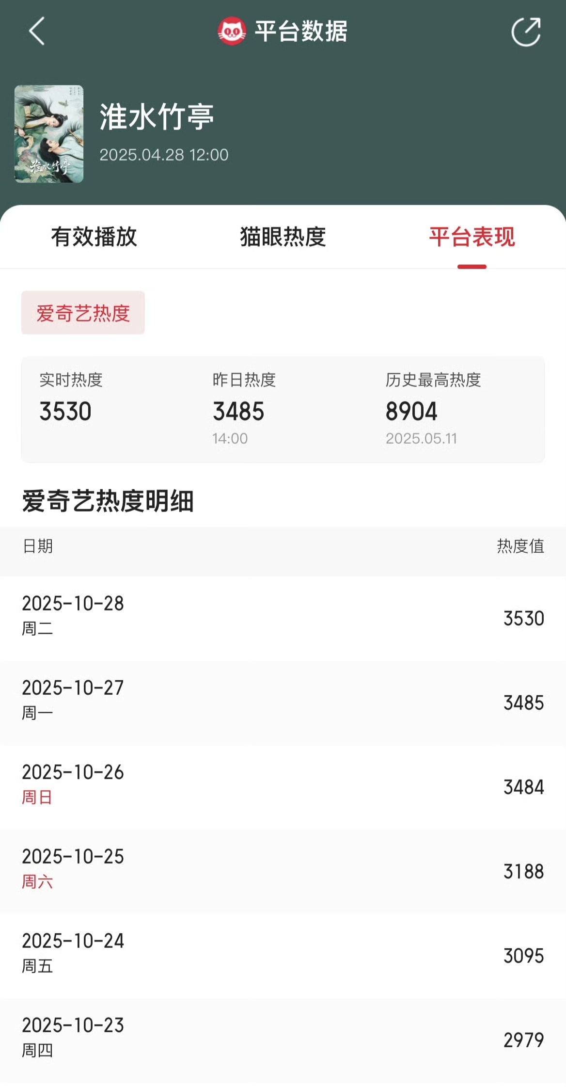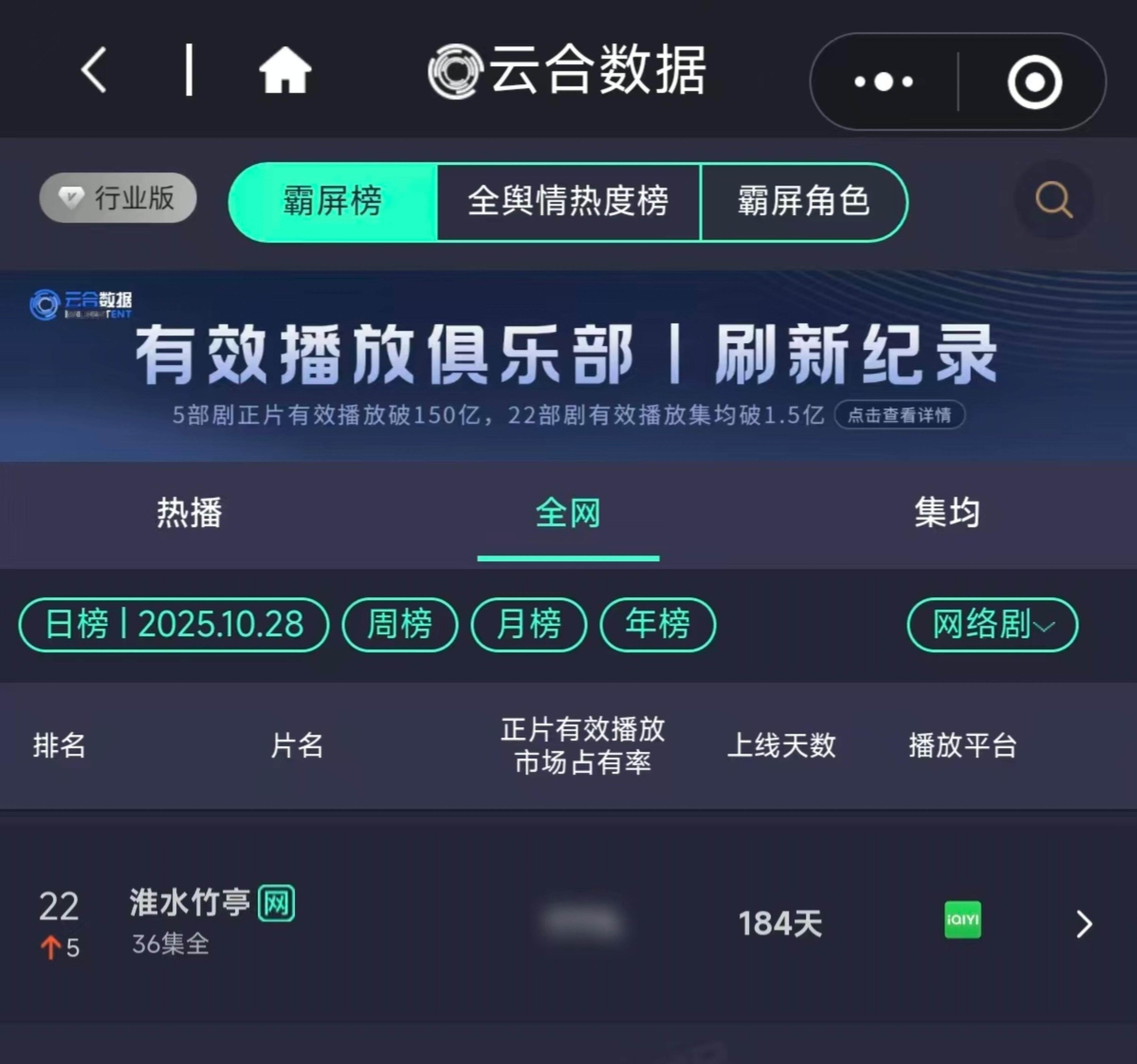 淮竹集均稳步上升发展,刘诗诗空降爱奇艺平台GA,衍生品里程碑式的断层第一,同类标杆