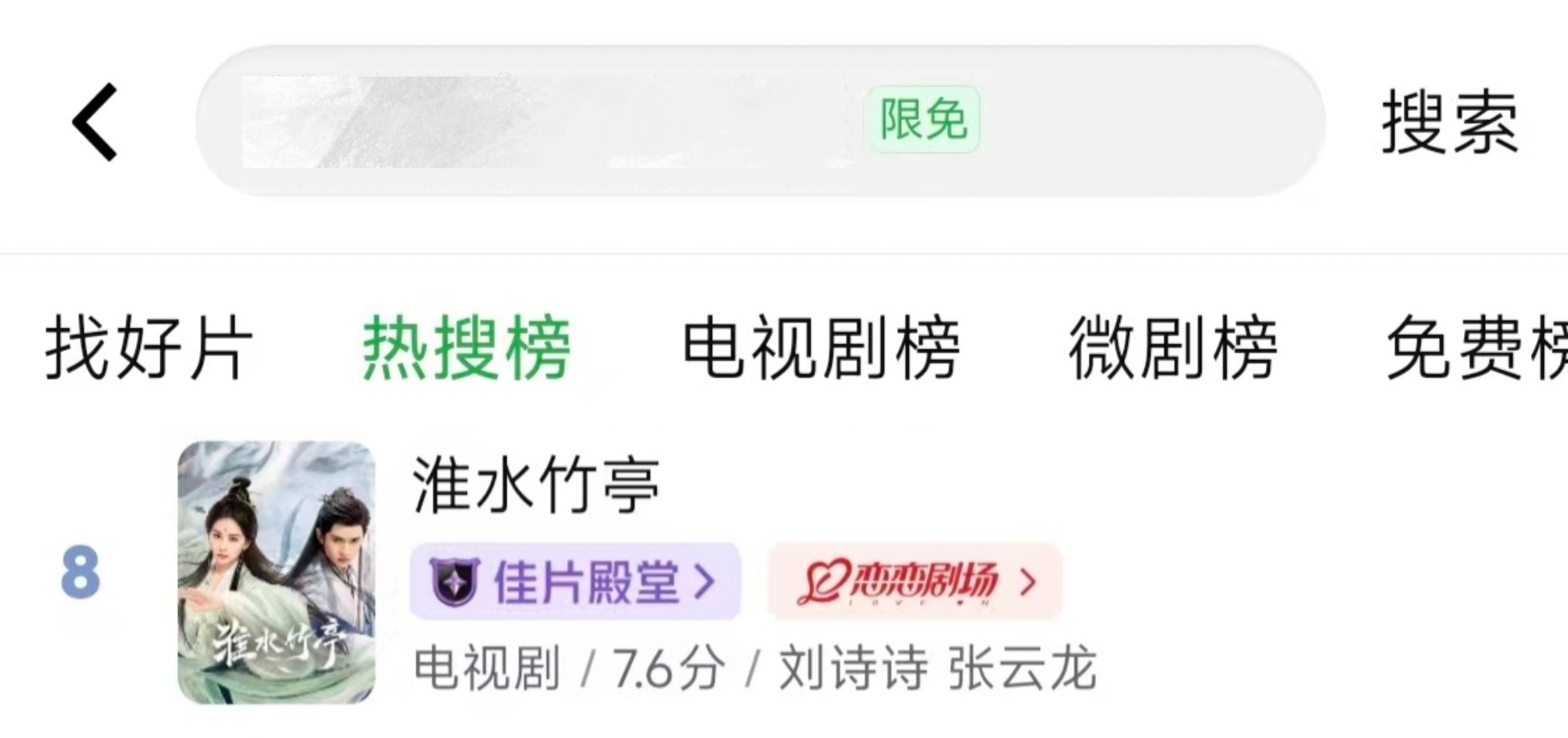 最近淮水竹亭无限免频上平台热搜榜,飙升榜,有效播放排名↑五位(另一部全剧限免的都无人看[笑cry])