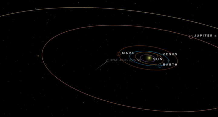 根据美国航空航天局NASA的描述,这颗彗星被归类为星际天体,因为它的轨道呈双曲线形状,并不遵循围绕太阳的封闭轨道的形状。如果沿着3I/Atlas的轨道追溯,那么这颗彗星显然起源于我们的太阳系之外。