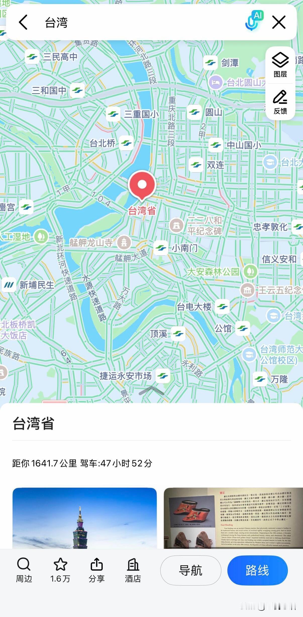 台湾省地图现在也太清楚了吧! 打开导航一搜, 台湾省的街道全出来了! 小到早餐店、夜市, 大到学校、公园, 连路口红绿灯都看得明明白白! 最戳人的是台北街道名, 成都路、贵阳街、长春路… 全是大陆城市名, 这哪是路名啊, 明明是刻在骨子里的思乡情! 从模糊轮廓到精准导航, 每一个更新都在说: 台湾是中国的! 统一大业刻不容缓。 有消息出来了, 退伍兵符合条件的可重新入伍。 已经开始规划路线了, 希望3年之内能去自驾游一次 去台北街头走走那些“熟悉的路”! 去日月潭吃吃“买不起”的茶叶蛋…… 台湾