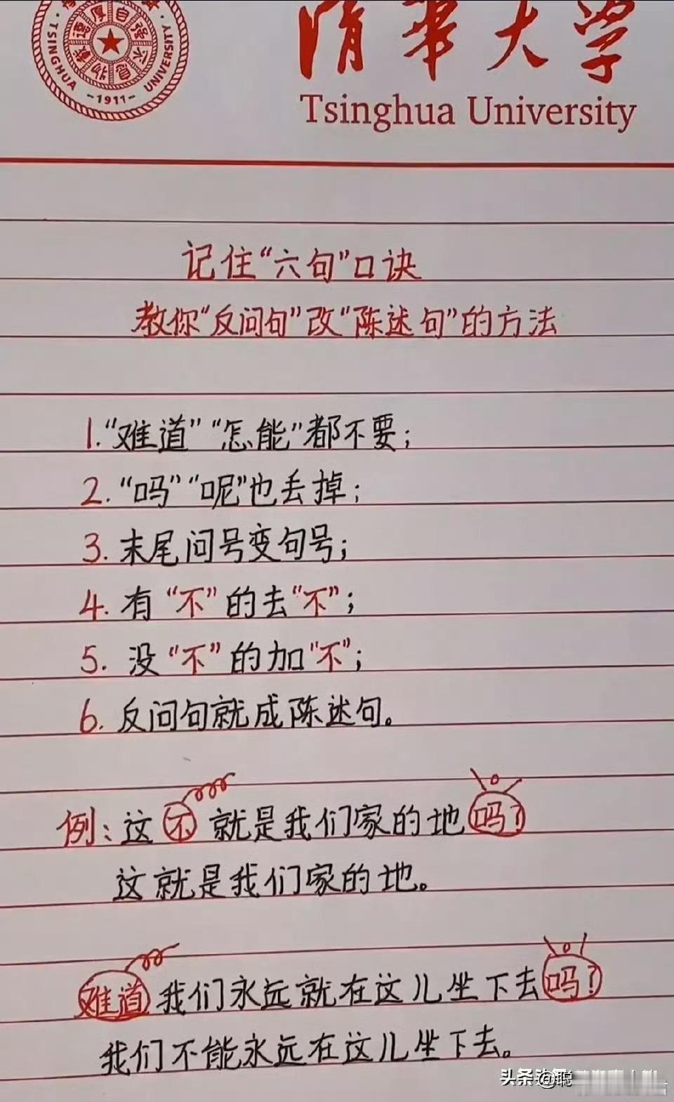 语文老教师总结出了一份口诀,什么缩句口诀、反问句改陈述句口诀、标点符号口诀、修改病句等,有方法有技巧有例题,一目了然,一个口诀全掌握,简单又好记![鲜花]