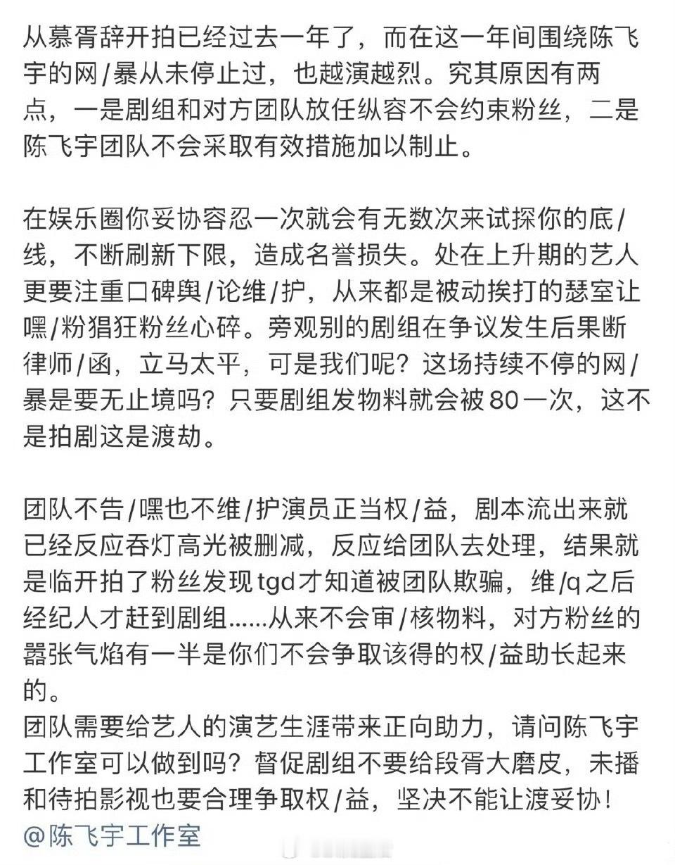 陈飞宇粉丝感觉够体面了,别欺负老实人啊。