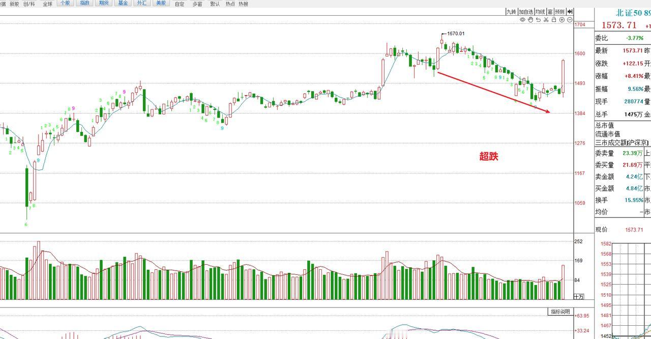 科技股的中期顶部已现,注意科技股的双头杀跌! 今日收盘虽是指数上涨,创业板大涨,但个股只是涨跌对半。 上午一度4000+下跌,在证券的护盘下维持稳定,但始终下跌家数维持在3300+的水平。 下午最后一小时在北证50大涨下继续回暖,最终涨跌对半。 盘面看轮动较快,之前强势的算力和存储高开下跌,而且还在昨日美股英伟达大涨的前提下形成的,说明有利好就出货。 今日强势的轮动到反内卷行业的光伏和锂矿最强,固态电池跟随。昨日的福建板块和军工分化下跌。这也是之前的几个方向之一,反复轮动。 当前整体维持快速轮动格局,这样的盘只能有反抽反弹对待,不是突破的走势。 以同花顺全a指数为例,今日探底回升,收盘上涨0.56%,维持一定增量,算是弱转强,但只能以轮动对待, 明日北上资金参与,才是最大的检验 从今日盘面看,北证50大涨,除了消息面刺激外。技术面依然是超跌反弹。 所以当下科技股双头已现,以中期顶部对待,与之对应的底部建仓,调整充分的对冲反弹。 所以选择上要注意。 目前处于反抽反弹的顶部对待,后续看回踩,回踩不破10月17日的低点,那就以图中走势对待,不然会更弱。 短期就是看科技股的双头顶部是温和还是构筑多重顶,另外就是对冲板块上涨成色。 先维持3900-4100的区间震荡腾挪。 这也是之前说的11月份加大波动。 这个时候一定注意高位股的风险。 后续就是绿色线的调整