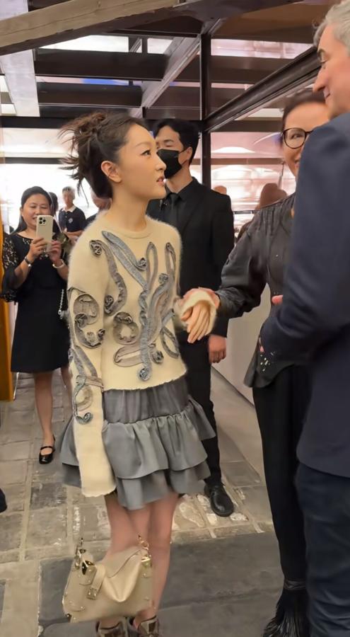 周冬雨这仪态也太随意了吧!周冬雨国外参加时装周,她穿着浅色毛衣搭配短裙,盘发造型