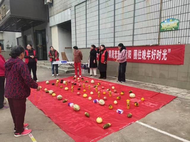 活动现场主题横幅鲜亮艳丽,摊位上整齐摆放着南瓜、火龙果、橘子、洋葱、包菜、萝卜等新鲜果蔬作为游戏奖品。随着志愿者一声口令,老人们有序排队,瞄准目标投圈。“这个游戏我们年轻时常玩,没想到老了还能再体验!”72岁的张阿姨笑着说。