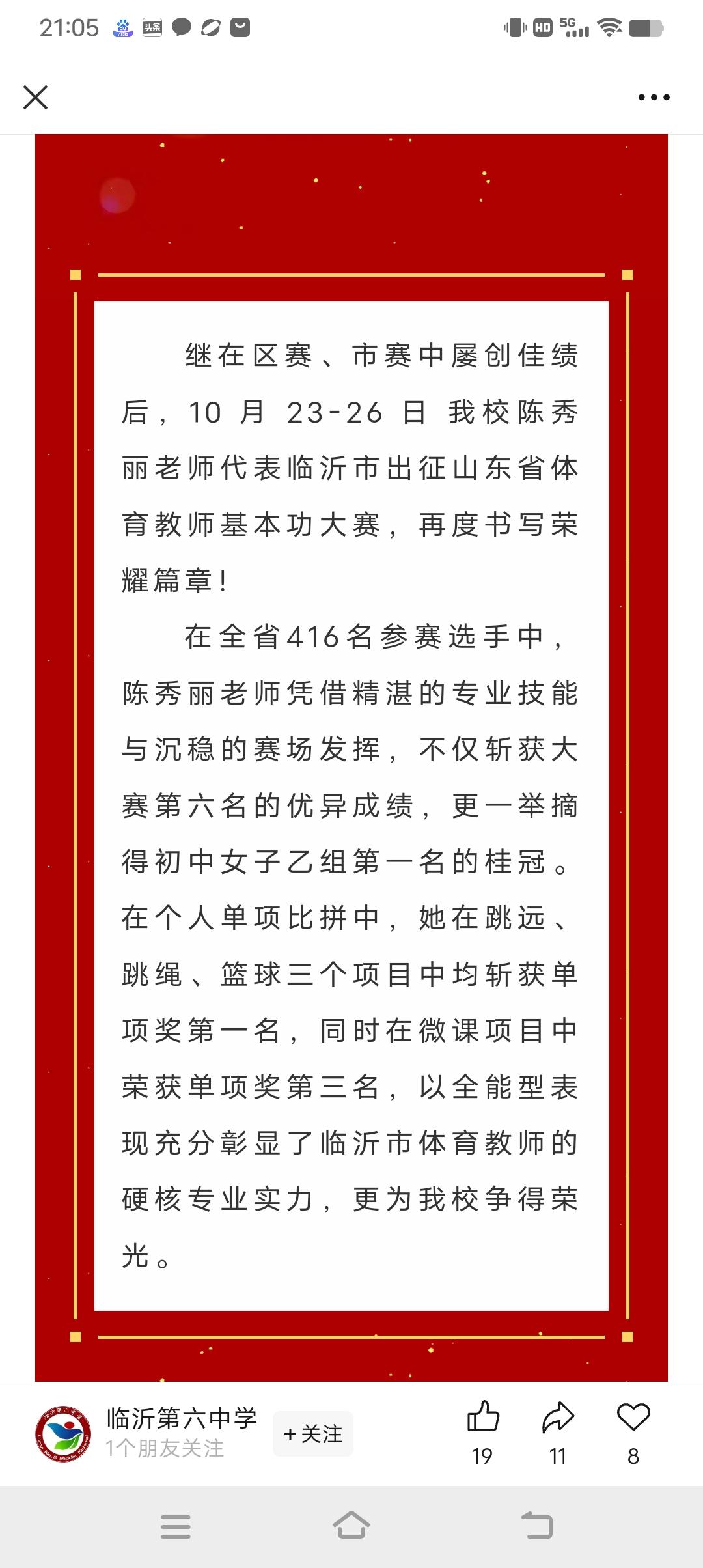 真厉害!临沂六中陈秀丽老师代表临沂市征战省体育教师基本功大赛勇创辉煌!临沂六中为什么教学质量好,究其原因,就是因为各学科都有高水平且认真负责的教师队伍,经过日积月累,才慢慢在居民中有了金子般的口碑。欢迎大家留言文明交流!