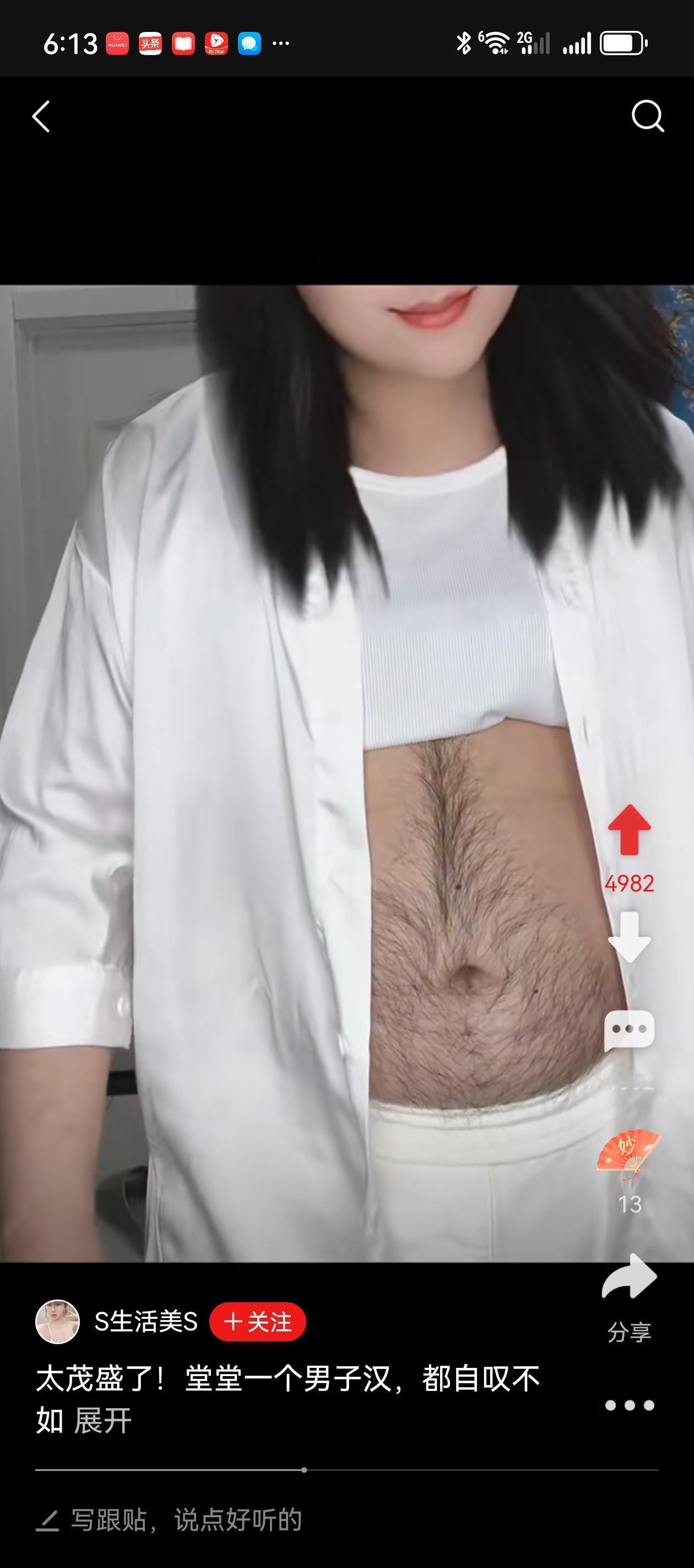 如此胸毛的女汉子就问你服不服? 姑娘芳龄31岁,就因为胸前毛发茂盛,谈了5个男友最终都分手了,原因是这5个男的或是本人或是家人,接受不了她的旺盛毛发。 姑娘其实条件挺好的,自已干电商有车有房还有存款,身体毛发都是父母给予的,她也别无选择没办法啊。 朋友们这样女孩能找到真爱吗?请大家评论区赐教。体毛困境
