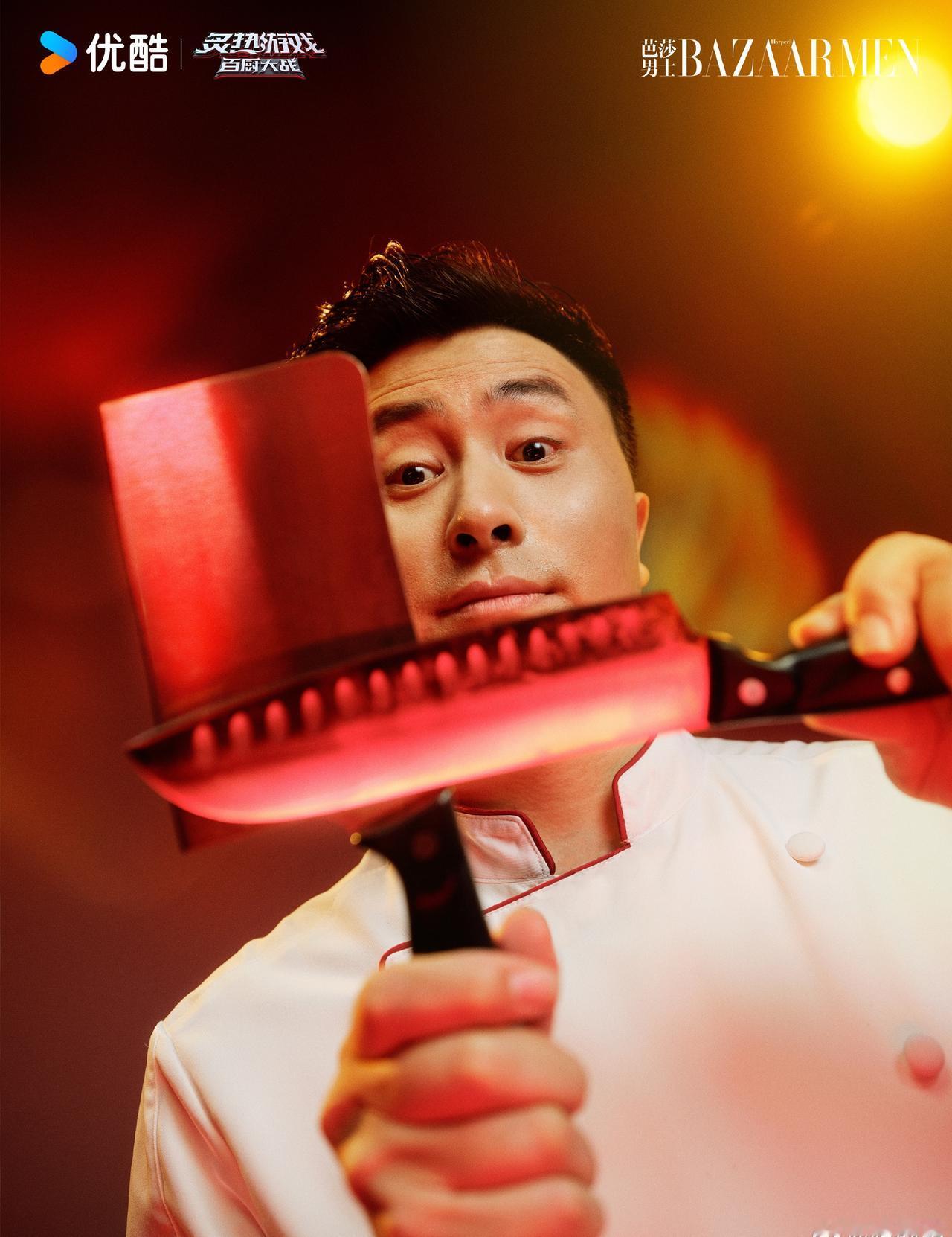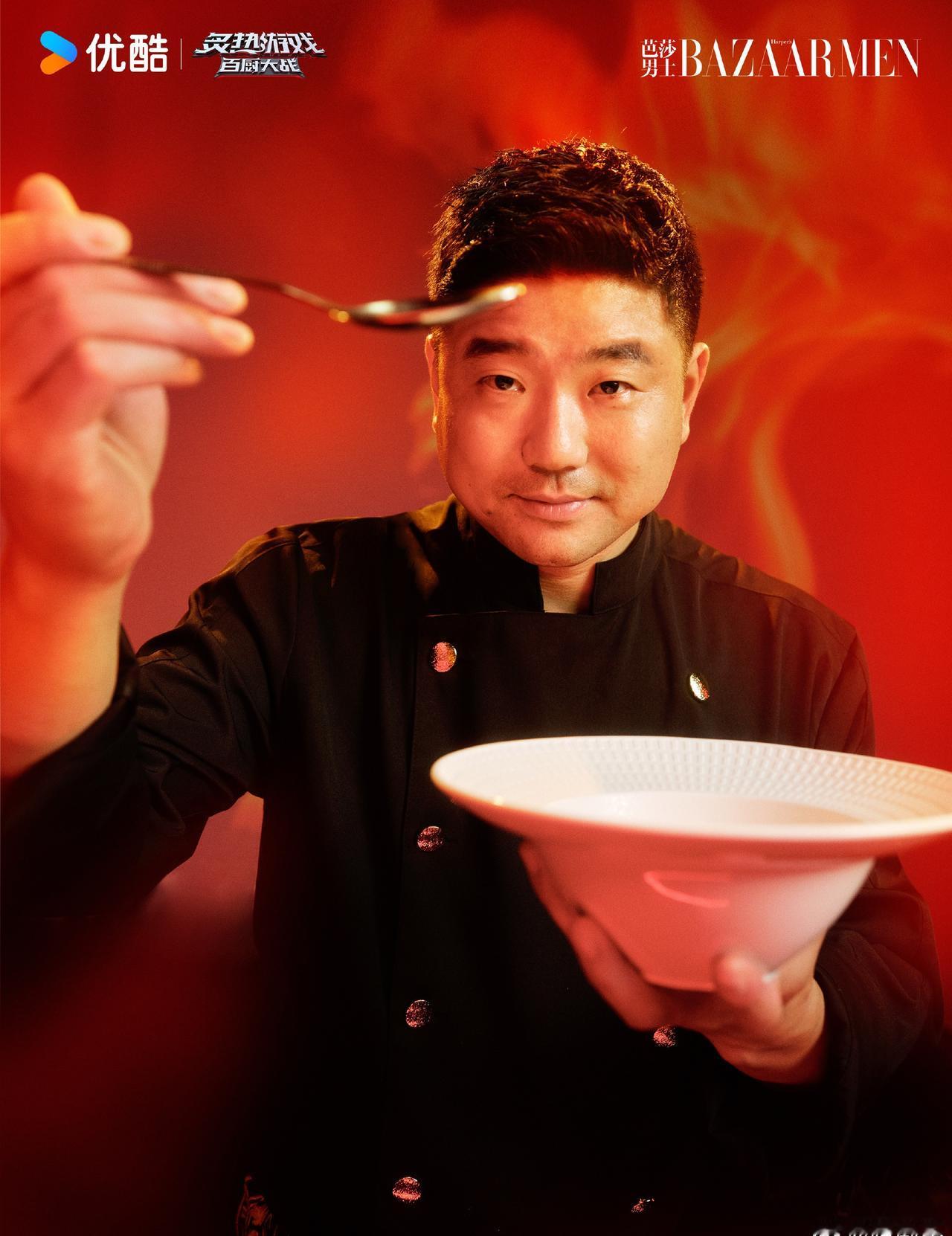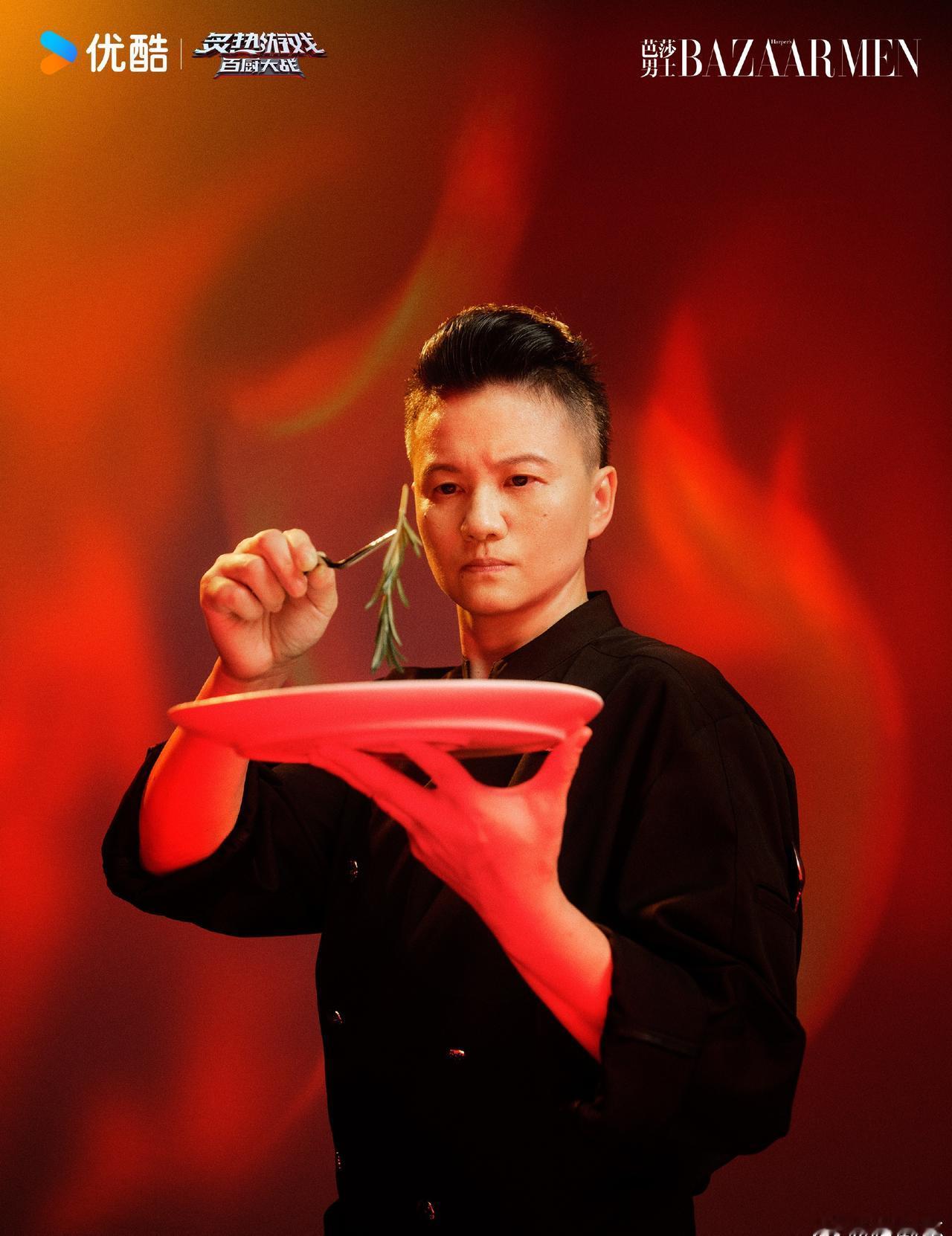 谁能想到厨师大片能这么有看头,《芭莎男士》果然没让人失望。火焰背景氛围感拉满,厨