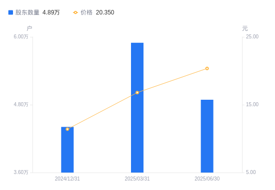 日期A股户数(户)流通A股户均持股数(股)户均持股市值(万元)2025-09-307944311167.6133.392025-06-304887913993.5928.482025-03-315895911601.1619.482024-12-314407915517.4317.692024-09-305014413640.5717.192024-06-304934313862.0016.052024-03-314748714403.7916.462023-12-314303115895.3519.092023-09-303775117810.4923.792023-06-304414115232.1819.48
