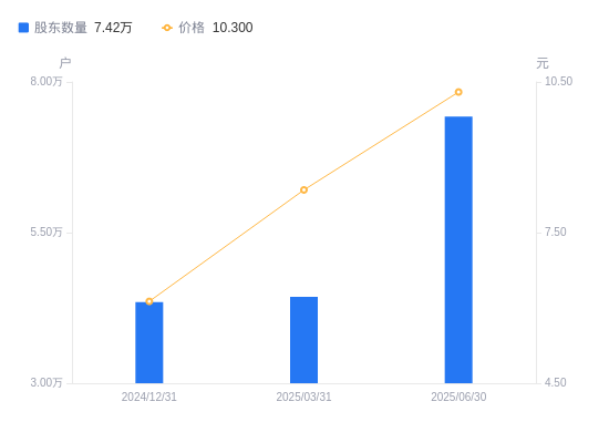 日期A股户数(户)流通A股户均持股数(股)户均持股市值(万元)2025-09-301927083592.798.742025-06-30742399326.099.612025-03-314436015607.7413.032024-12-314348015923.639.762024-09-304547715224.3910.812024-06-303899217756.459.072024-03-314293116127.2611.552024-02-294360615877.6212.052023-12-314150914953.6614.622023-09-304590013523.1314.44