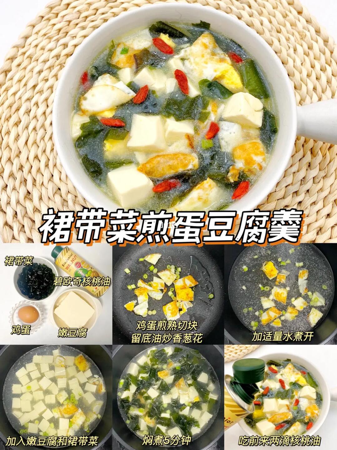 裙带菜、鸡蛋、嫩豆腐、葱花、碧欧奇核桃油