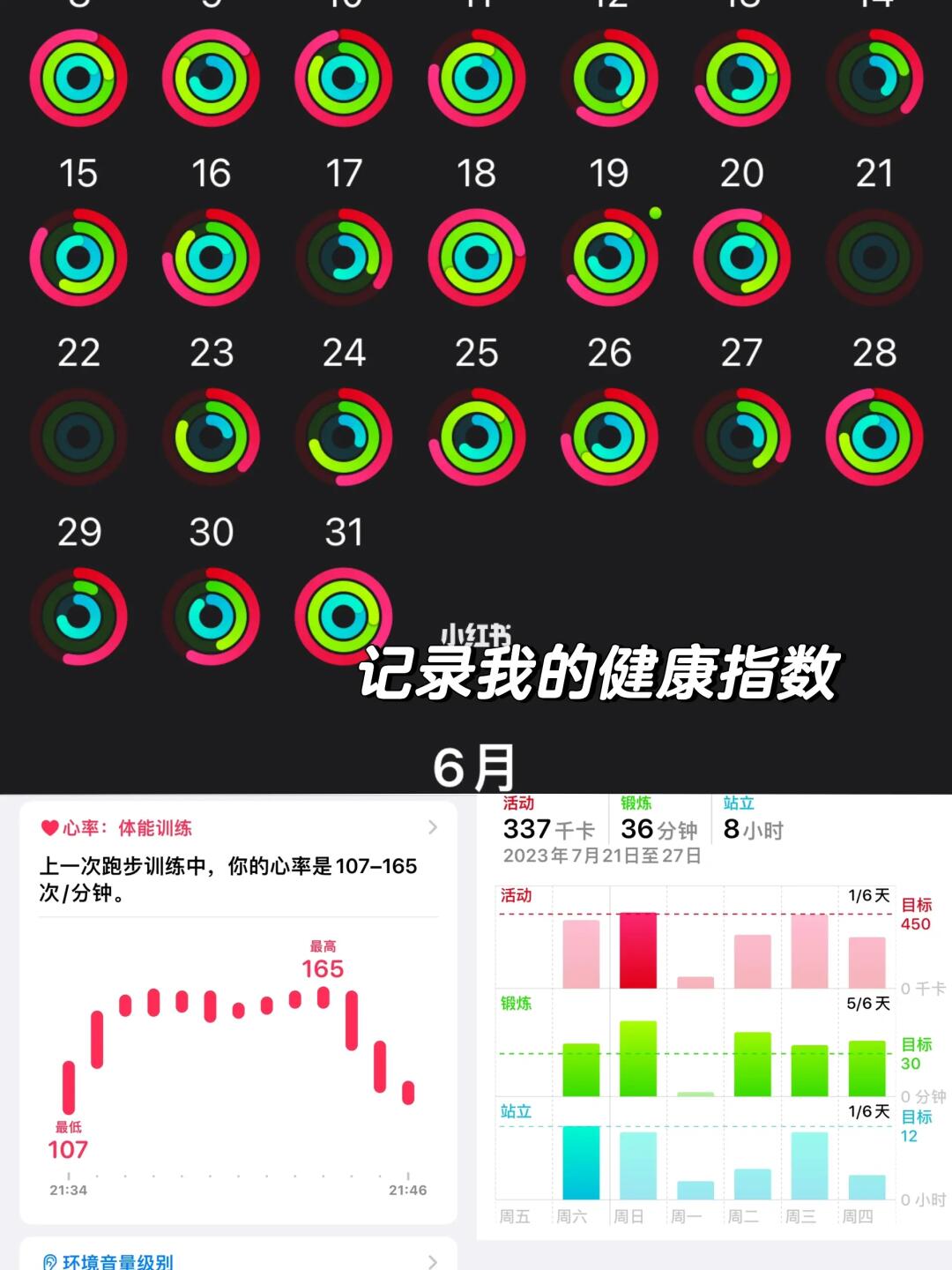 👉保持记录跑步的记录 我会认真看看是否每月有完成多少个三个圆环全部闭环