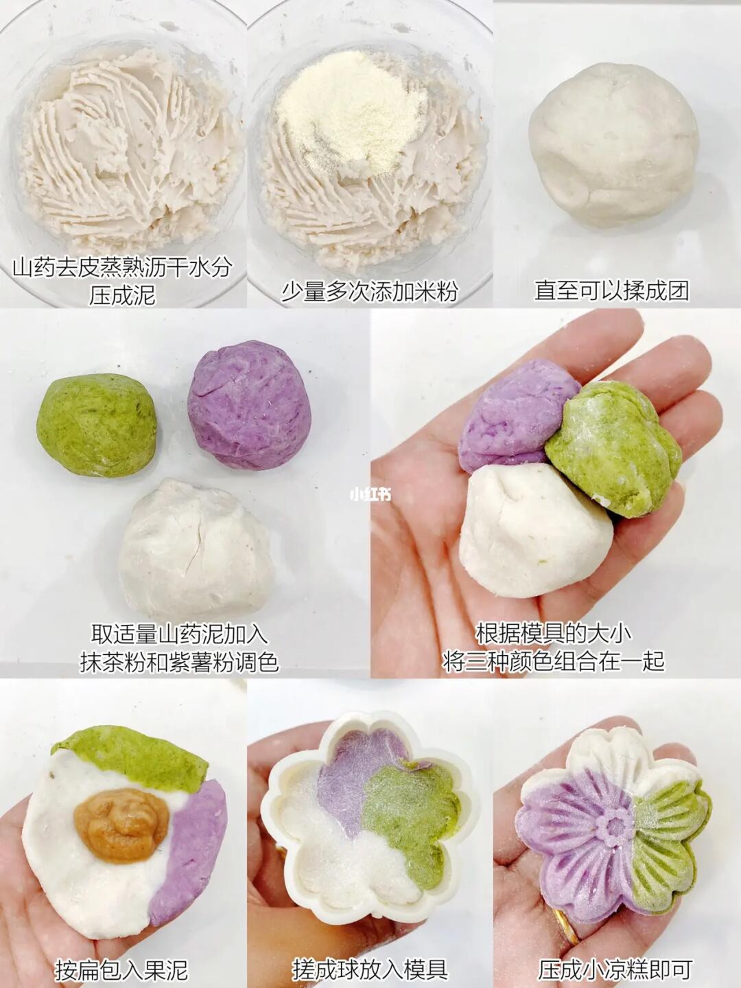 ▪️山药去皮蒸熟后沥干水分压成泥,少量多次的加入米粉,直至可以揉成团。
